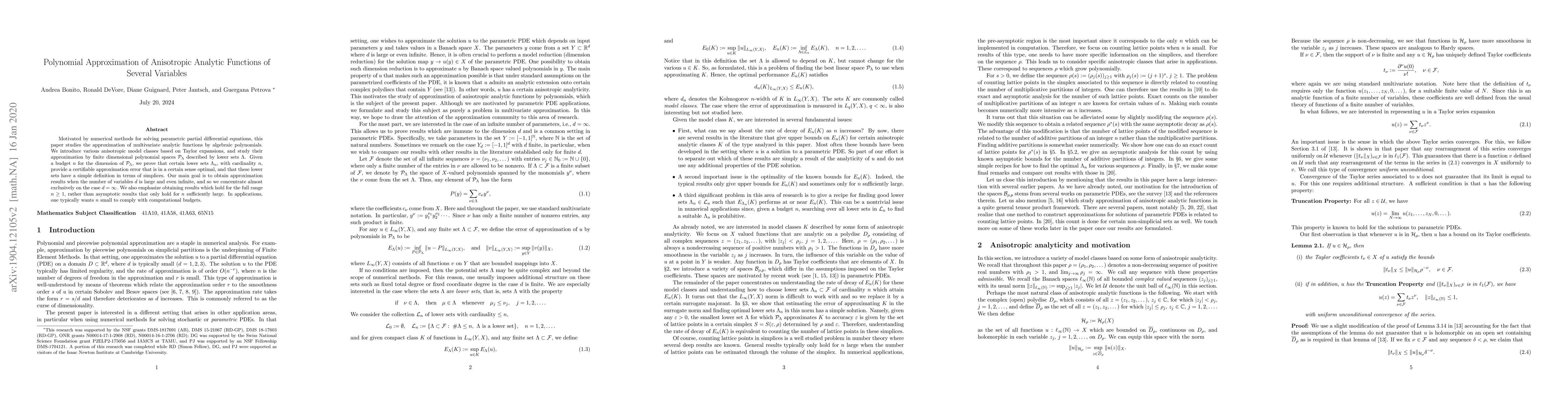 This paper develops a method for approximating anisotropic analytic functions with algebraic polynomials, focusing on large and infinite variable cases, and provides optimal approximation error guarantees.