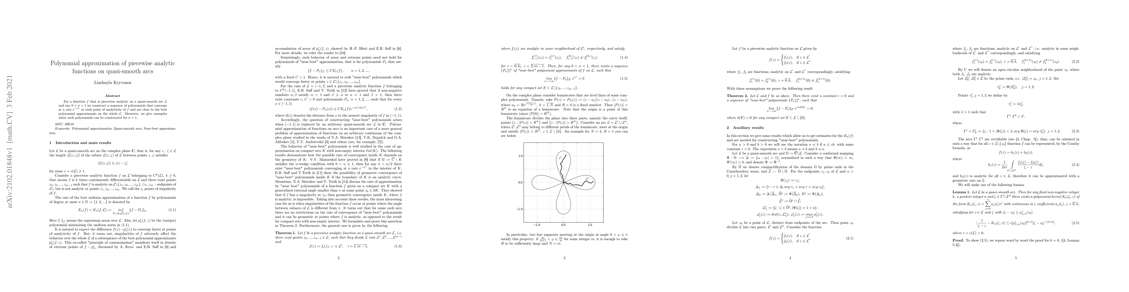 This paper constructs a sequence of "near-best" polynomial approximations for piecewise analytic functions on quasi-smooth arcs, achieving convergence at a rate of $e^{-n^{\sigma}}$ at points of analyticity and demonstrating geometric convergence for specific examples.