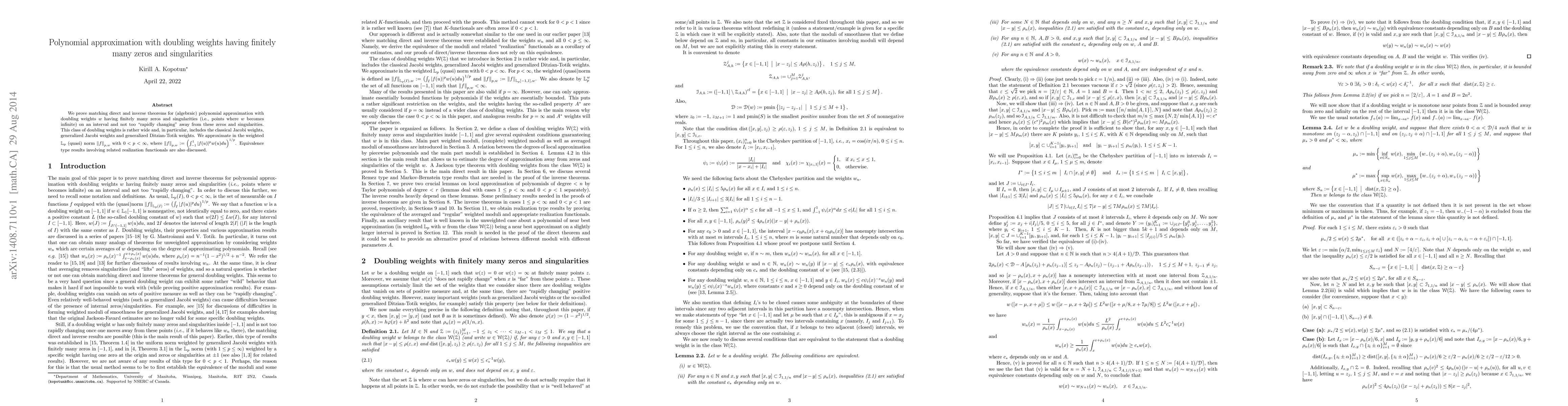 This paper proves direct and inverse theorems for polynomial approximation using doubling weights with finitely many zeros and singularities. It covers a wide range of weights, including Jacobi and generalized Ditzian-Totik weights, and discusses approximation in the weighted $L_p$ norm.
