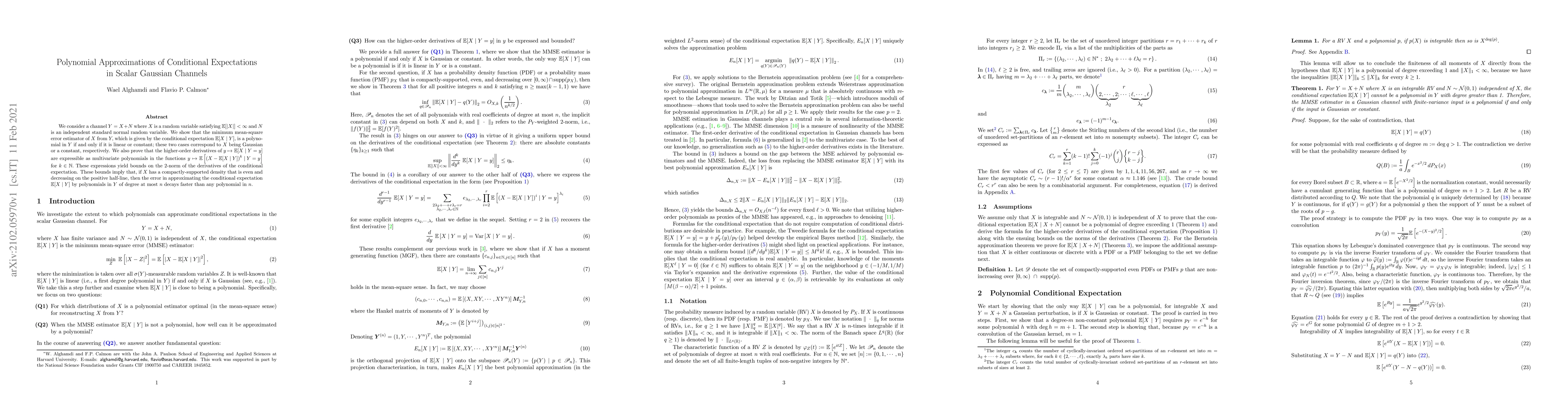 We consider a channel $Y=X+N$ where $X$ is a random variable satisfying $\mathbb{E}[|X|]<\infty$ and $N$ is an independent standard normal random variable. We show that the minimum mean-square error estimator of $X$ from $Y,$ which is given by the conditional expectation $\mathbb{E}[X \mid Y],$ is a polynomial in $Y$ if and only if it is linear or constant; these two cases correspond to $X$ being Gaussian or a constant, respectively. We also prove that the higher-order derivatives of $y \mapsto \mathbb{E}[X \mid Y=y]$ are expressible as multivariate polynomials in the functions $y \mapsto \mathbb{E}\left[ \left( X - \mathbb{E}[X \mid Y] \right)^k \mid Y = y \right]$ for $k\in \mathbb{N}.$ These expressions yield bounds on the $2$-norm of the derivatives of the conditional expectation. These bounds imply that, if $X$ has a compactly-supported density that is even and decreasing on the positive half-line, then the error in approximating the conditional expectation $\mathbb{E}[X \mid Y]$ by polynomials in $Y$ of degree at most $n$ decays faster than any polynomial in $n.$
