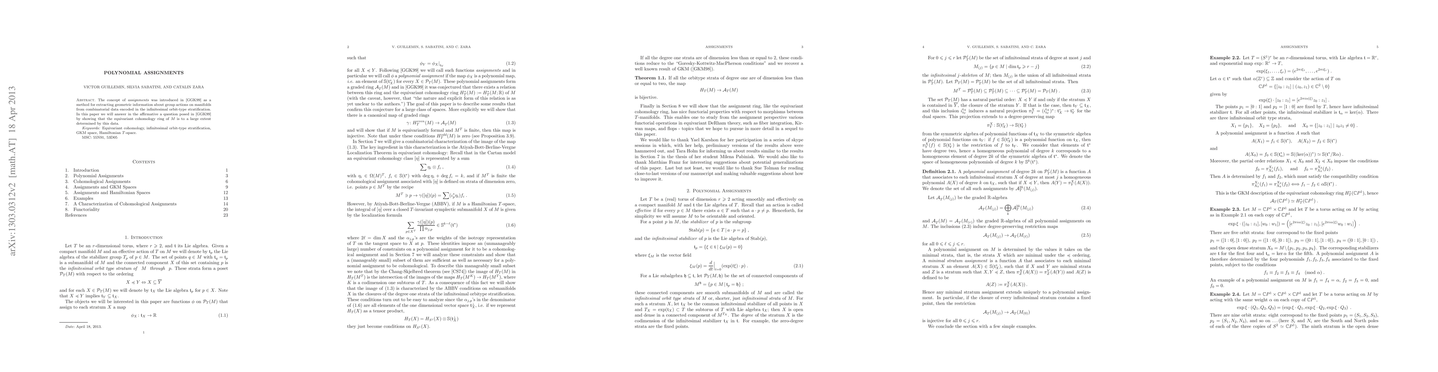 The concept of assignments was introduced in [GGK99] as a method for extracting geometric information about group actions on manifolds from combinatorial data encoded in the infinitesimal orbit-type stratification. In this paper we will answer in the affirmative a question posed in [GGK99] by showing that the equivariant cohomology ring of $M$ is to a large extent determined by this data.