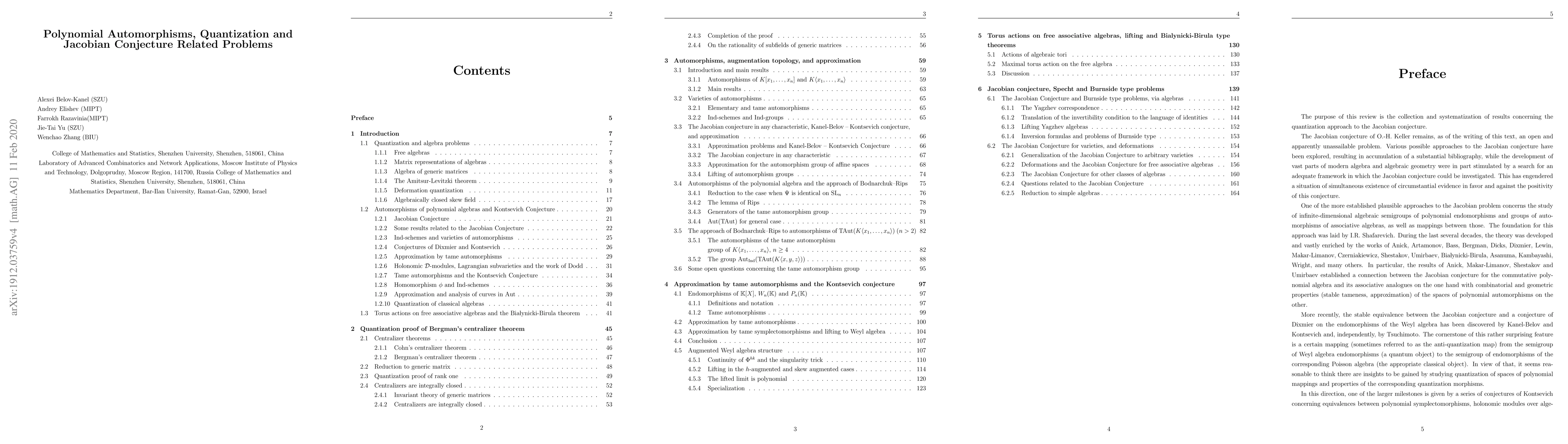 This review paper collects recent results on quantization approaches to the Jacobian conjecture and related problems, focusing on key findings, methodology, and implications.