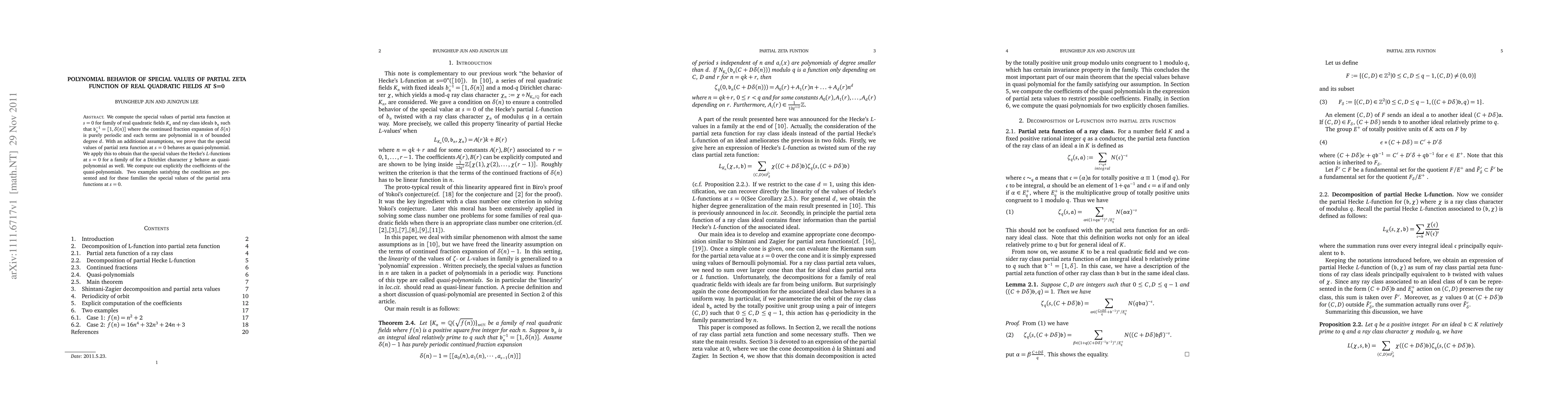 Researchers compute special values of partial zeta functions for real quadratic fields and find they behave as quasi-polynomials at s=0, with coefficients determined by the field's properties.