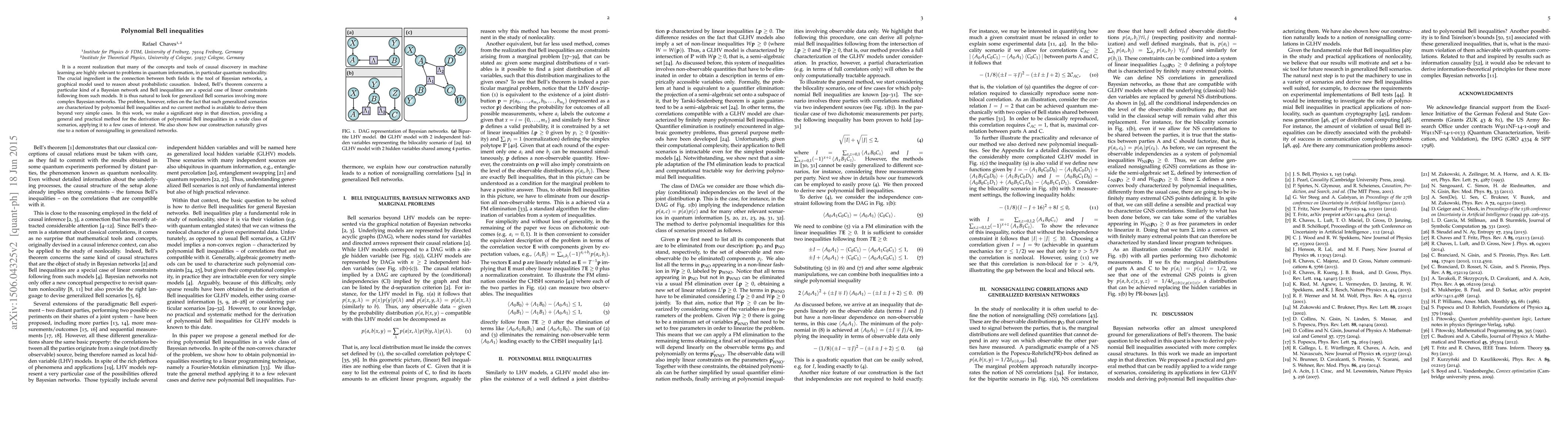This paper presents a novel method for deriving polynomial Bell inequalities from complex Bayesian networks, bridging the gap between causal discovery in machine learning and quantum information theory. The authors demonstrate the practical application of their method to several relevant cases and introduce a concept of non-signalling in generalized network scenarios.