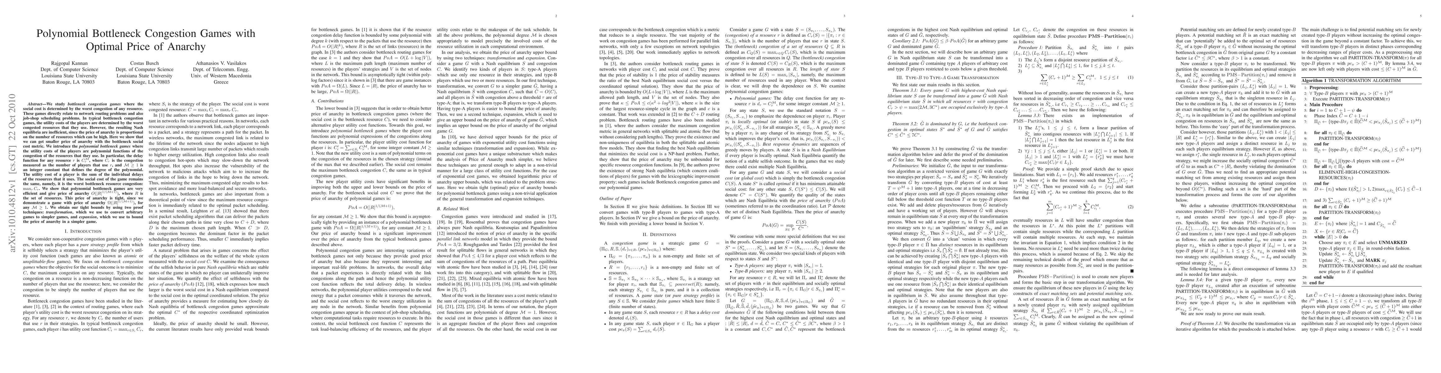 We study {\em bottleneck congestion games} where the social cost is determined by the worst congestion of any resource. These games directly relate to network routing problems and also job-shop scheduling problems. In typical bottleneck congestion games, the utility costs of the players are determined by the worst congested resources that they use. However, the resulting Nash equilibria are inefficient, since the price of anarchy is proportional on the number of resources which can be high. Here we show that we can get smaller price of anarchy with the bottleneck social cost metric. We introduce the {\em polynomial bottleneck games} where the utility costs of the players are polynomial functions of the congestion of the resources that they use. In particular, the delay function for any resource $r$ is $C_{r}^\M$, where $C_r$ is the congestion measured as the number of players that use $r$, and $\M \geq 1$ is an integer constant that defines the degree of the polynomial. The utility cost of a player is the sum of the individual delays of the resources that it uses. The social cost of the game remains the same, namely, it is the worst bottleneck resource congestion: $\max_{r} C_r$. We show that polynomial bottleneck games are very efficient and give price of anarchy $O(|R|^{1/(\M+1)})$, where $R$ is the set of resources. This price of anarchy is tight, since we demonstrate a game with price of anarchy $\Omega(|R|^{1/(\M+1)})$, for any $\M \geq 1$. We obtain our tight bounds by using two proof techniques: {\em transformation}, which we use to convert arbitrary games to simpler games, and {\em expansion}, which we use to bound the price of anarchy in a simpler game.