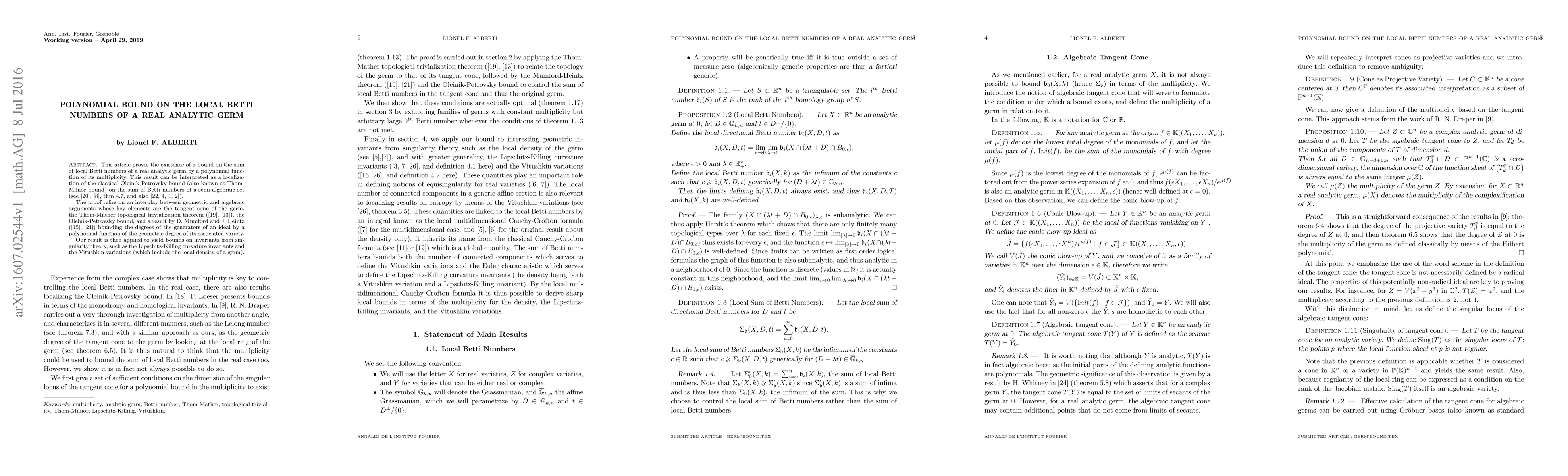 This paper establishes a polynomial bound on the sum of local Betti numbers for real analytic germs, extending the classical Oleinik-Petrovsky bound. The proof utilizes geometric and algebraic techniques, including the tangent cone and the Thom-Mather trivialization theorem, and applies to derive bounds on singularity theory invariants.