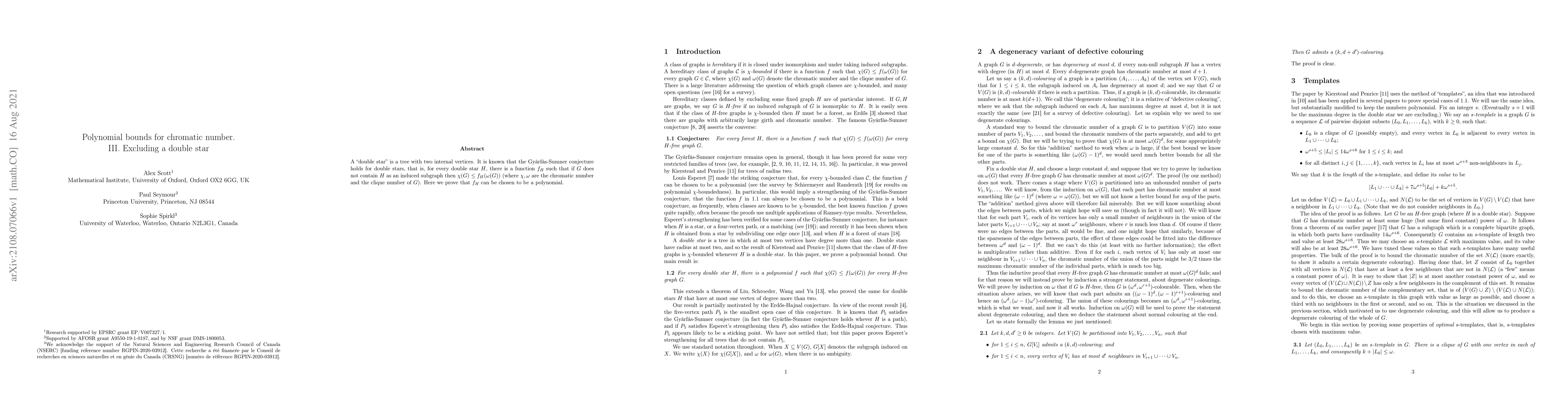 Researchers proved that for double stars in graph theory, a chromatic number bound can be expressed as a polynomial function of the clique number, resolving a long-standing conjecture.