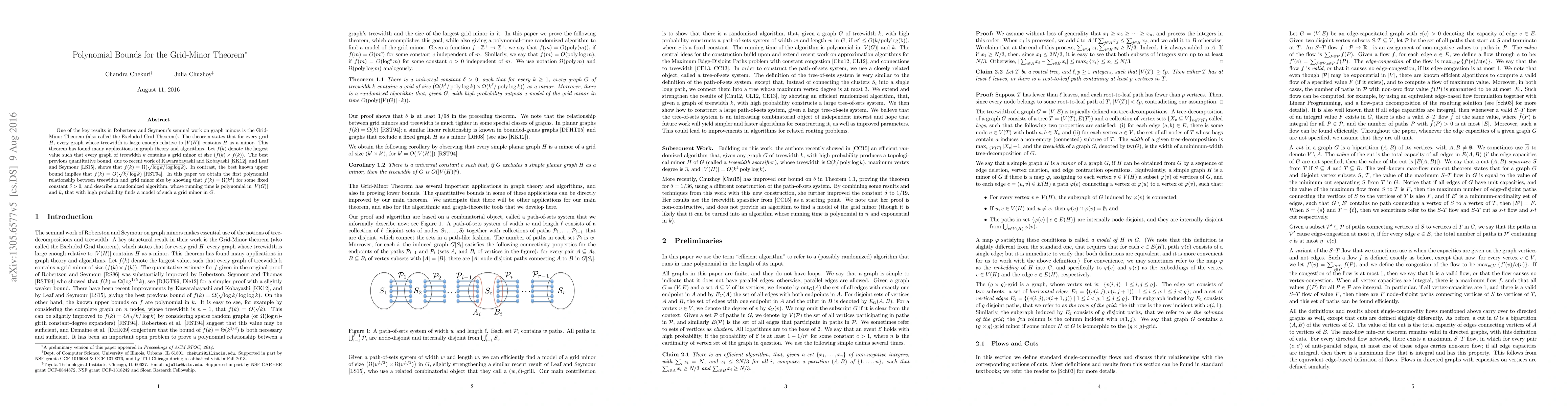 This paper establishes the first polynomial relationship between treewidth and grid minor size, proving $f(k)=\Omega(k^{\delta})$ for some fixed constant $\delta > 0$. It also presents a polynomial-time randomized algorithm that finds a grid minor model with high probability.