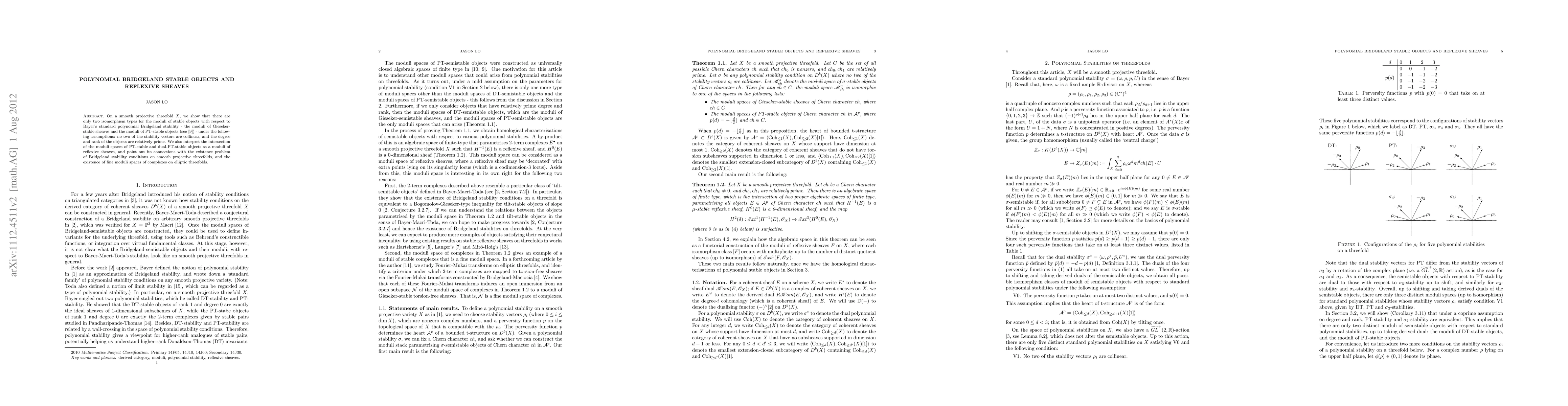 On a smooth projective threefold, we show that there are only two isomorphism types for the moduli of stable objects with respect to Bayer's standard polynomial Bridgeland stability - the moduli of Gieseker-stable sheaves and the moduli of PT-stable objects - under the following assumptions: no two of the stability vectors are collinear, and the degree and rank of the objects are relatively prime. We also describe a close relation between the intersection of the moduli spaces of PT-stable and dual-PT-stable objects, and the moduli of reflexive sheaves.