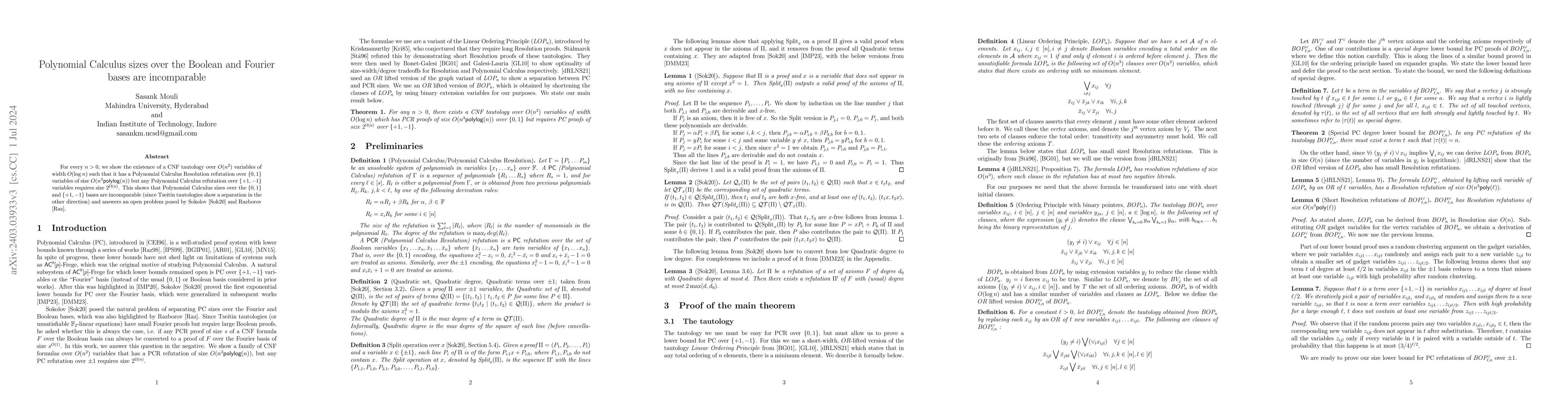 This paper demonstrates that Polynomial Calculus resolution refutation sizes differ significantly between Boolean and Fourier bases, showing an example of a CNF tautology that requires exponential size in the Fourier basis but polynomial size in the Boolean basis. This finding answers an open question regarding the comparability of these refutation sizes.