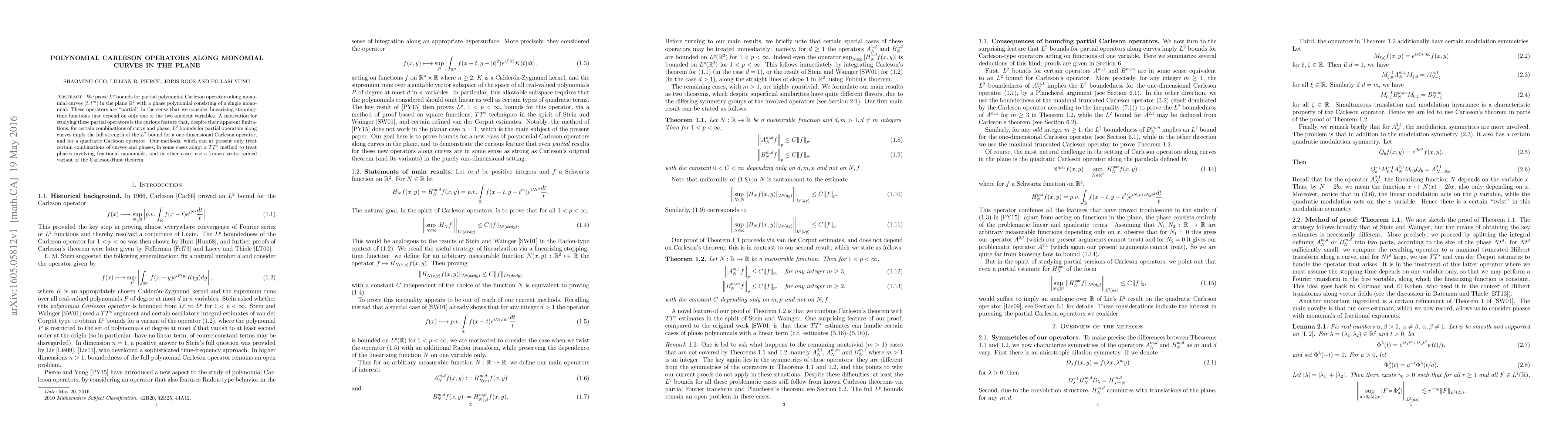 This paper establishes $L^p$ bounds for partial polynomial Carleson operators along monomial curves in $\mathbb{R}^2$, demonstrating that $L^2$ bounds for these partial operators can imply full $L^2$ bounds for one-dimensional and quadratic Carleson operators under certain conditions. The study employs adapted $TT^*$ methods and a vector-valued Carleson-Hunt theorem.