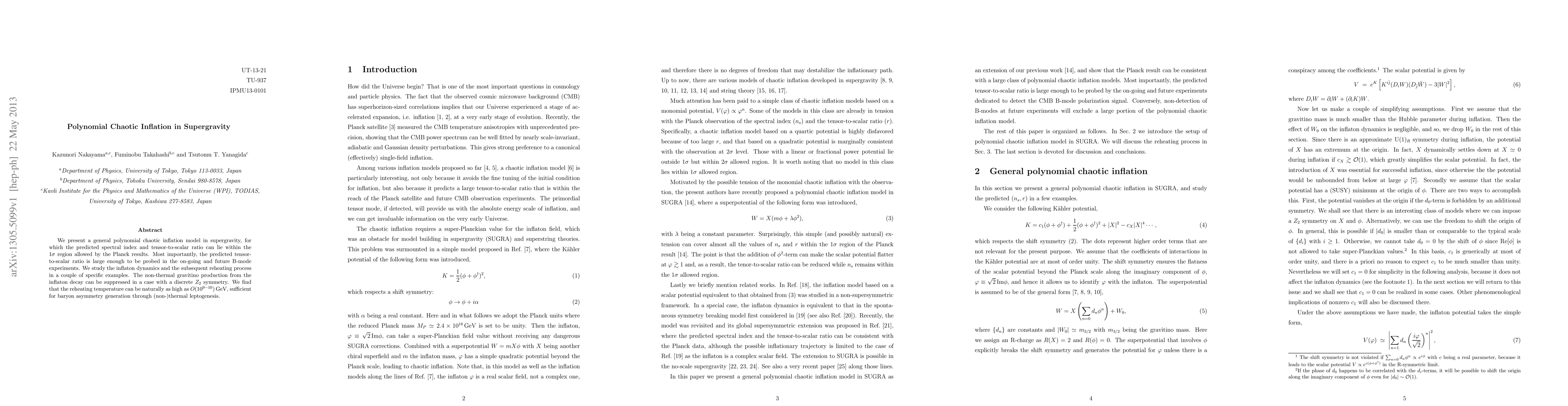 This paper proposes a polynomial chaotic inflation model in supergravity, showing that it can align with Planck observations and predict a large tensor-to-scalar ratio detectable in B-mode experiments. The study also explores reheating dynamics and finds high reheating temperatures conducive to generating baryon asymmetry via leptogenesis.