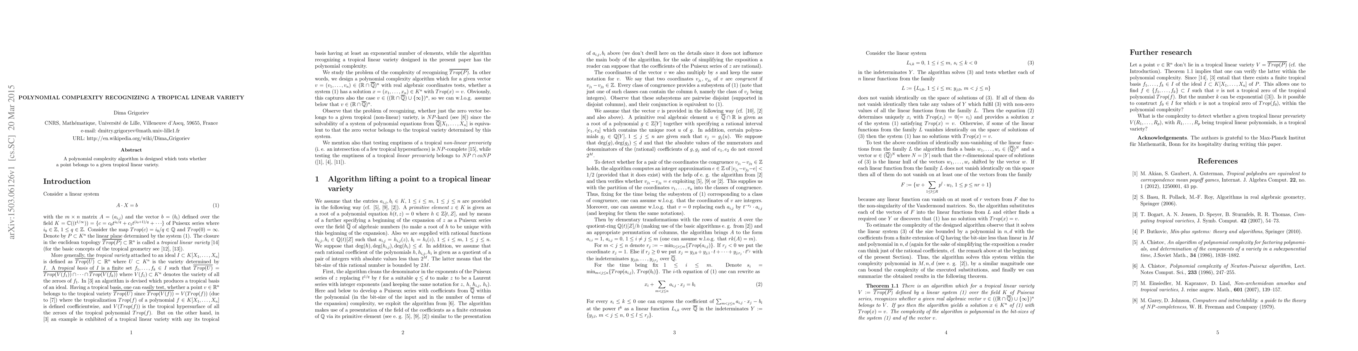 This research introduces an efficient algorithm with polynomial complexity for determining if a point lies within a specified tropical linear variety. The methodology efficiently tests point membership, impacting computational geometry and tropical geometry applications.