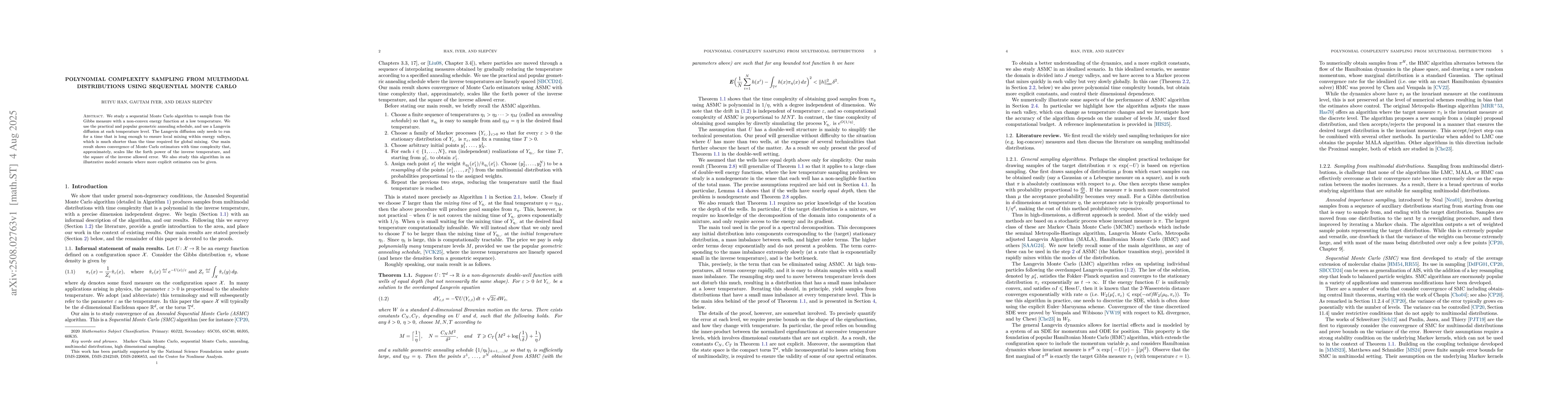 We study a sequential Monte Carlo algorithm to sample from the Gibbs measure with a non-convex energy function at a low temperature. We use the practical and popular geometric annealing schedule, and use a Langevin diffusion at each temperature level. The Langevin diffusion only needs to run for a time that is long enough to ensure local mixing within energy valleys, which is much shorter than the time required for global mixing. Our main result shows convergence of Monte Carlo estimators with time complexity that, approximately, scales like the forth power of the inverse temperature, and the square of the inverse allowed error. We also study this algorithm in an illustrative model scenario where more explicit estimates can be given.
