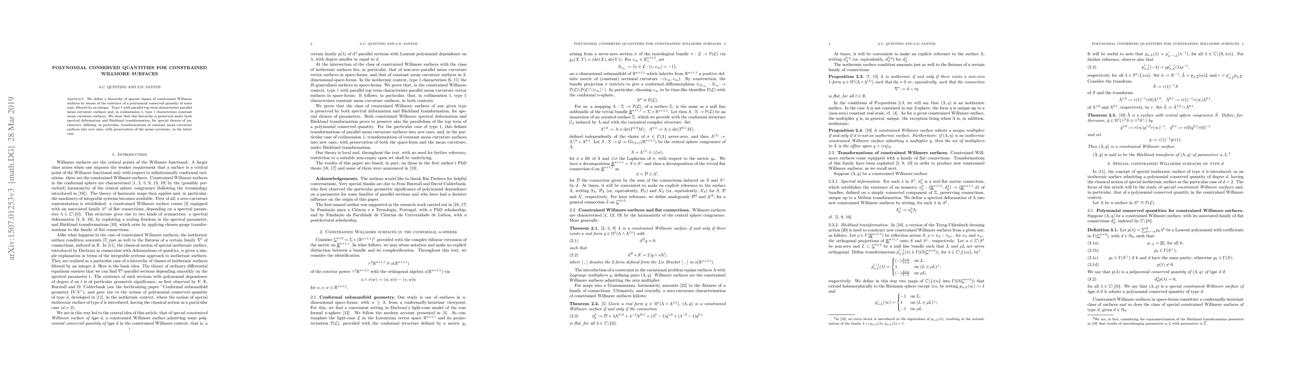 We define a hierarchy of special classes of constrained Willmore surfaces by means of the existence of a polynomial conserved quantity of some type, filtered by an integer. Type 1 with parallel top term characterises parallel mean curvature surfaces and, in codimension 1, type 1 characterises constant mean curvature surfaces. We show that this hierarchy is preserved under both spectral deformation and Baecklund transformation, for special choices of parameters, defining, in particular, transformations of constant mean curvature surfaces into new ones, with preservation of the mean curvature, in the latter case.