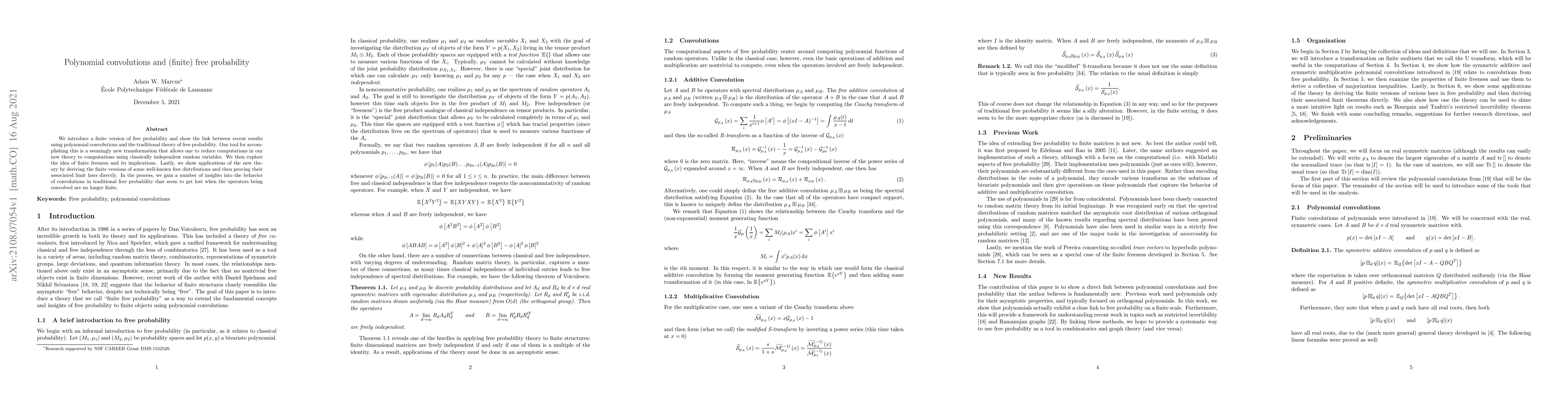 This paper introduces a finite version of free probability and connects it to polynomial convolutions, employing a new transformation to simplify computations. It explores finite freeness, derives finite versions of well-known free distributions, and proves their associated limit laws, providing insights into convolution behavior in traditional free probability.