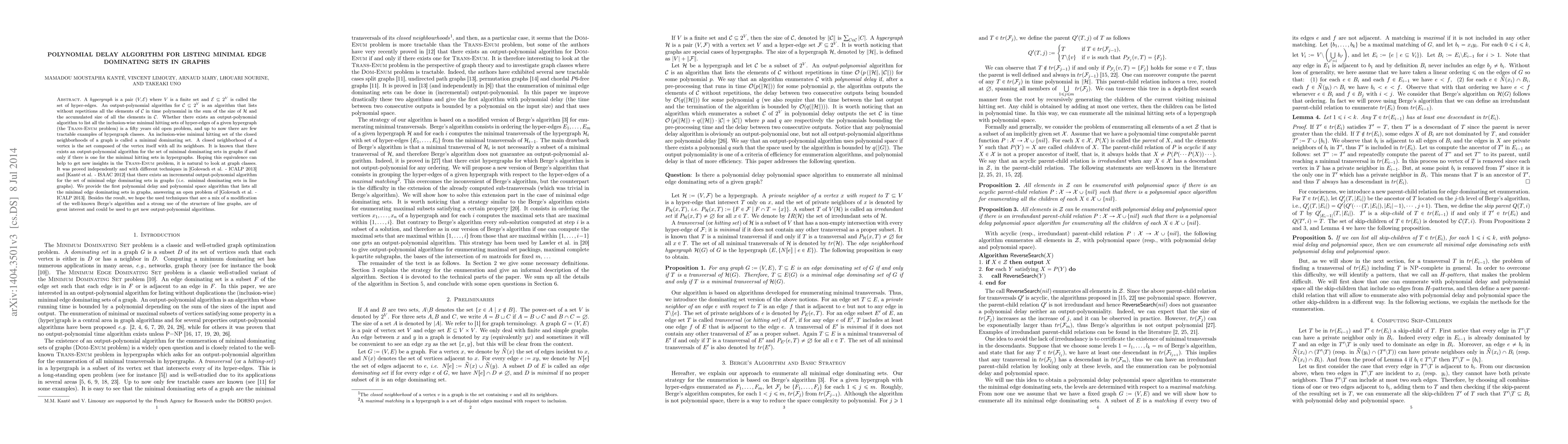 The Transversal problem, i.e, the enumeration of all the minimal transversals of a hypergraph in output-polynomial time, i.e, in time polynomial in its size and the cumulated size of all its minimal transversals, is a fifty years old open problem, and up to now there are few examples of hypergraph classes where the problem is solved. A minimal dominating set in a graph is a subset of its vertex set that has a non empty intersection with the closed neighborhood of every vertex. It is proved in [M. M. Kant\'e, V. Limouzy, A. Mary, L. Nourine, On the Enumeration of Minimal Dominating Sets and Related Notions, In Revision 2014] that the enumeration of minimal dominating sets in graphs and the enumeration of minimal transversals in hypergraphs are two equivalent problems. Hoping this equivalence can help to get new insights in the Transversal problem, it is natural to look inside graph classes. It is proved independently and with different techniques in [Golovach et al. - ICALP 2013] and [Kant\'e et al. - ISAAC 2012] that minimal edge dominating sets in graphs (i.e, minimal dominating sets in line graphs) can be enumerated in incremental output-polynomial time. We provide the first polynomial delay and polynomial space algorithm that lists all the minimal edge dominating sets in graphs, answering an open problem of [Golovach et al. - ICALP 2013]. Besides the result, we hope the used techniques that are a mix of a modification of the well-known Berge's algorithm and a strong use of the structure of line graphs, are of great interest and could be used to get new output-polynomial time algorithms.