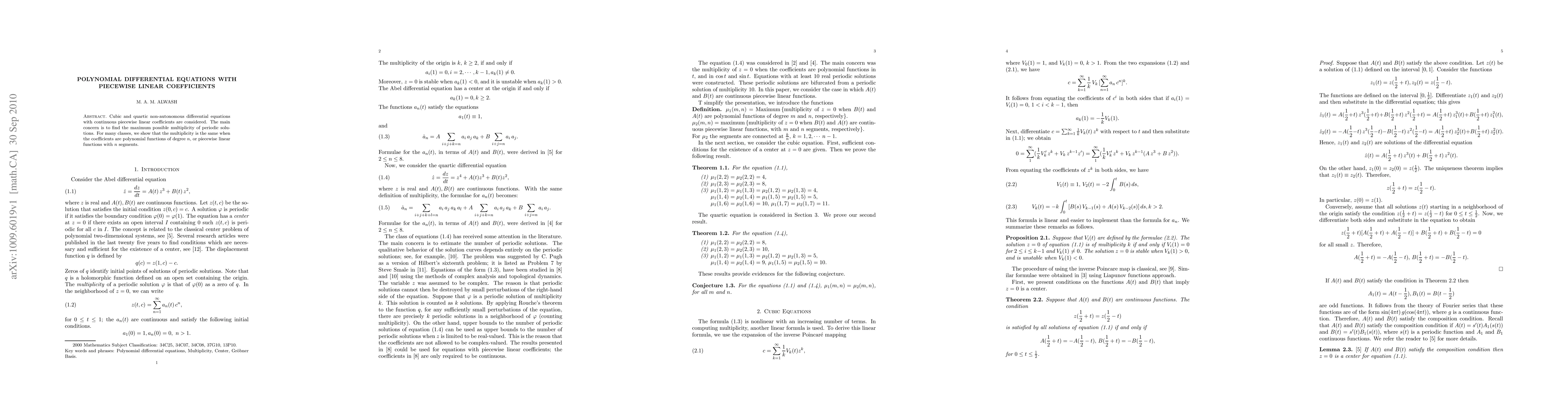 Cubic and quartic non-autonomous differential equations with continuous piecewise linear coefficients are considered. The main concern is to find the maximum possible multiplicity of periodic solutions. For many classes, we show that the mutiplicity is the same when the coefficients are polynomial functions of degree n or piecewise linear functions with n segments.