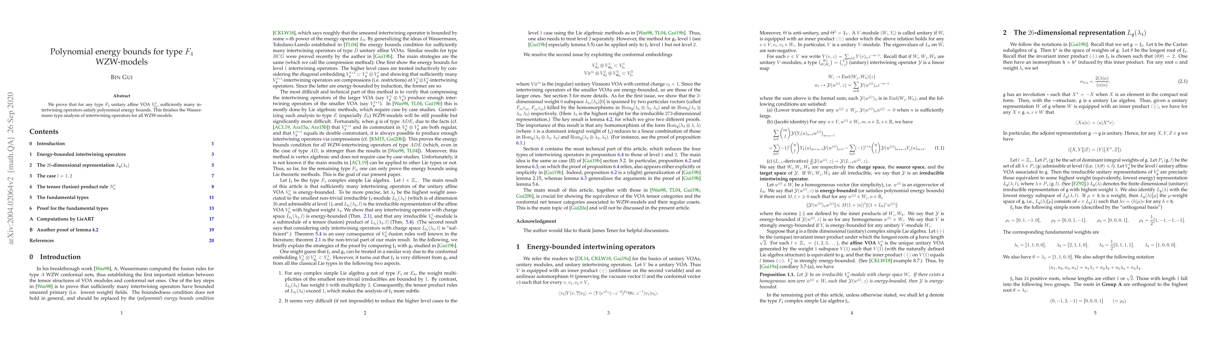 We prove that sufficiently many intertwining operators of type $F_4$ unitary affine VOAs satisfy polynomial energy bounds. This finishes the Wassermann type analysis of intertwining operators for all WZW-models.