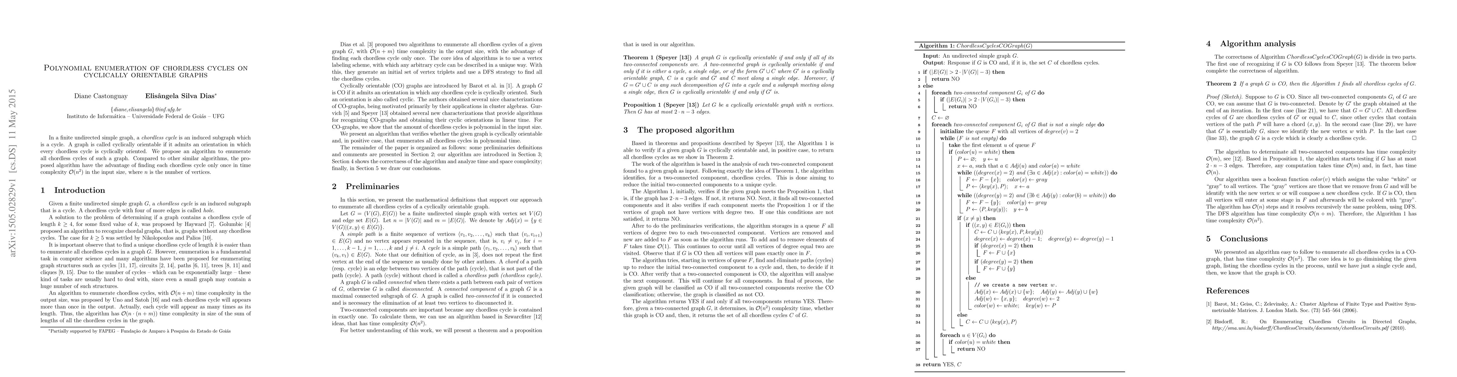 The paper presents a novel algorithm for enumerating chordless cycles in cyclically orientable graphs with a guaranteed polynomial time complexity.