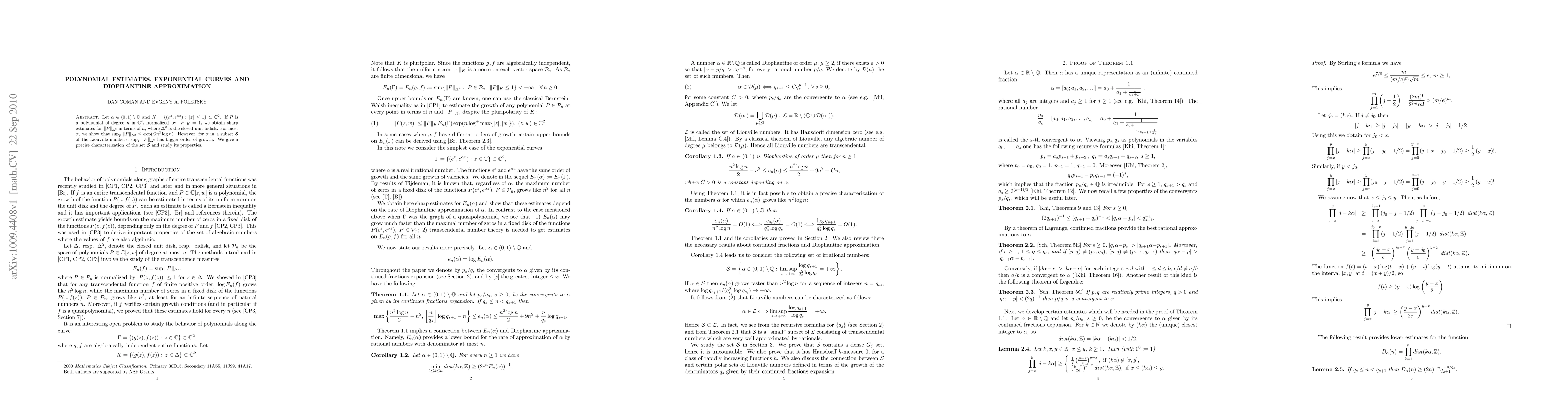 Let $\alpha\in(0,1)\setminus{\Bbb Q}$ and $K=\{(e^z,e^{\alpha z}):\,|z|\leq1\}\subset{\Bbb C}^2$. If $P$ is a polynomial of degree $n$ in ${\Bbb C}^2$, normalized by $\|P\|_K=1$, we obtain sharp estimates for $\|P\|_{\Delta^2}$ in terms of $n$, where $\Delta^2$ is the closed unit bidisk. For most $\alpha$, we show that $\sup_P\|P\|_{\Delta^2}\leq\exp(Cn^2\log n)$. However, for $\alpha$ in a subset ${\mathcal S}$ of the Liouville numbers, $\sup_P\|P\|_{\Delta^2}$ has bigger order of growth. We give a precise characterization of the set ${\mathcal S}$ and study its properties.