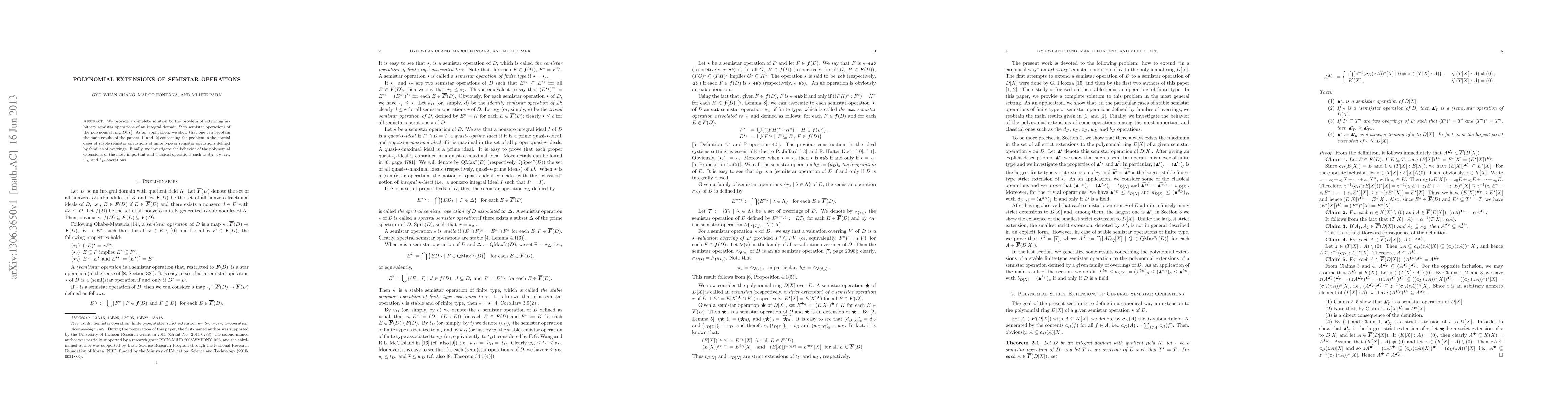 This paper offers a comprehensive solution to extending semistar operations of an integral domain $D$ to polynomial ring $D[X]$. It also revisits and generalizes previous results on stable semistar operations and examines the behavior of classical semistar operations in polynomial extensions.