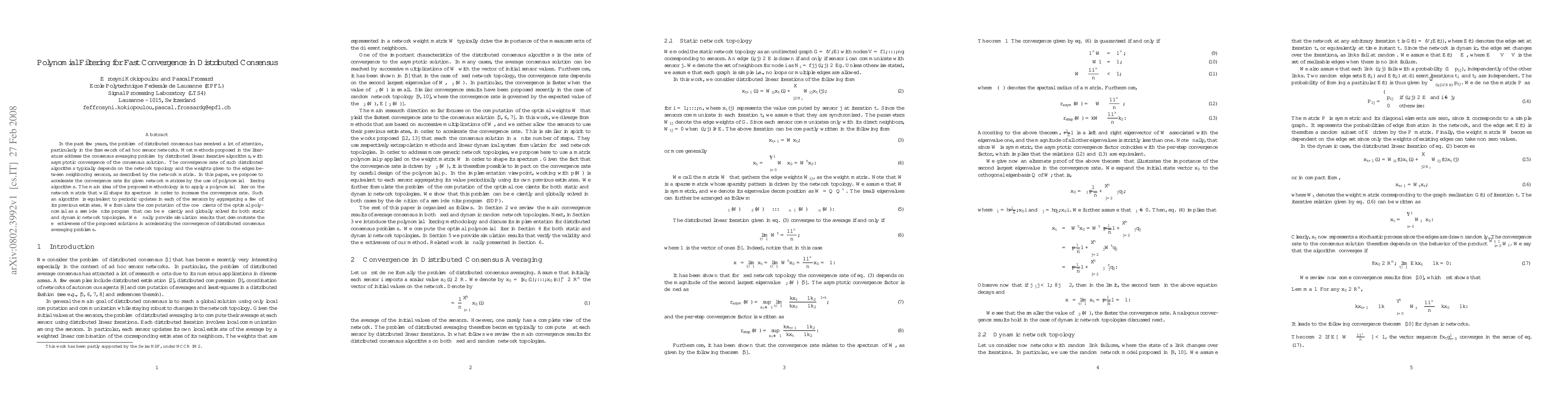 This paper proposes polynomial filtering algorithms to accelerate the convergence of distributed consensus in sensor networks. The method shapes the network matrix's spectrum to speed up convergence, formulated as a solvable semi-definite program, and demonstrated through simulations to effectively enhance convergence rates.