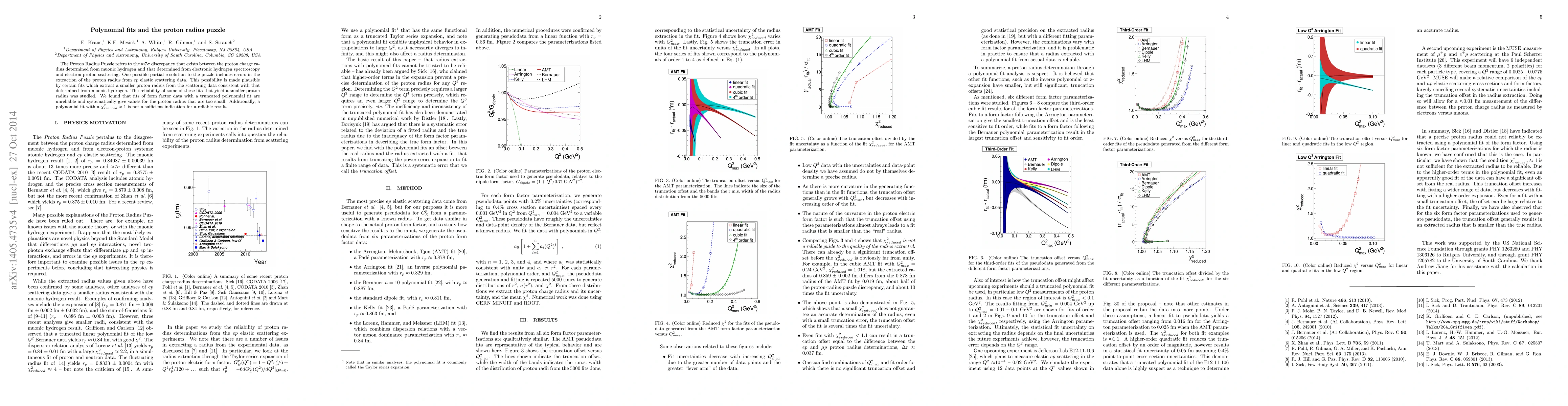 The Proton Radius Puzzle involves a significant discrepancy in proton radius measurements from different methods. Polynomial fits to extract a smaller radius from scattering data are unreliable, often yielding systematically smaller values, and a reduced chi-square value of ~1 does not guarantee a reliable fit.
