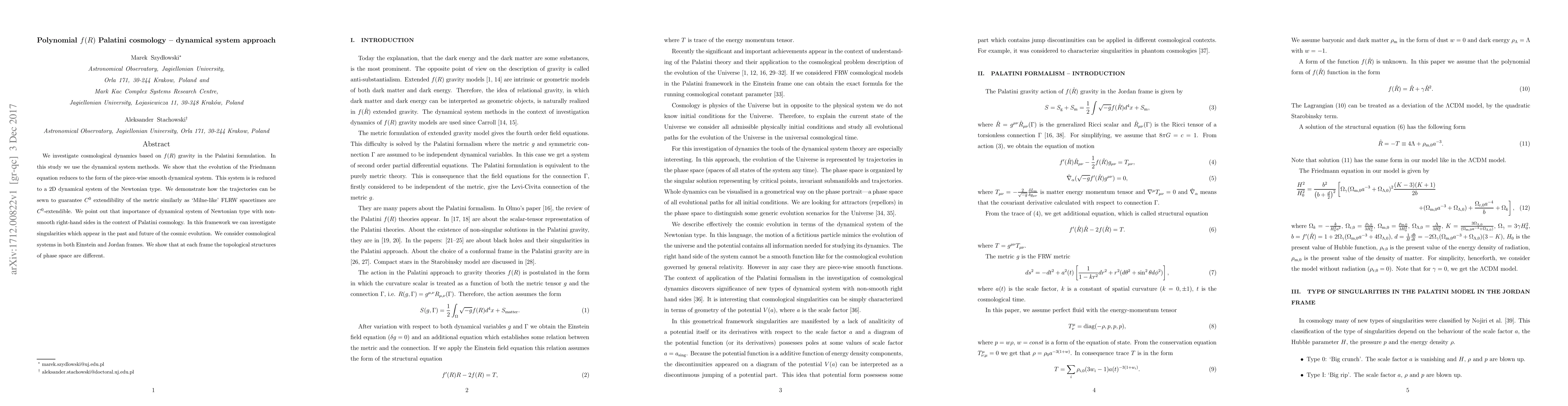 We investigate cosmological dynamics based on $f(R)$ gravity in the Palatini formulation. In this study we use the dynamical system methods. We show that the evolution of the Friedmann equation reduces to the form of the piece-wise smooth dynamical system. This system is is reduced to a 2D dynamical system of the Newtonian type. We demonstrate how the trajectories can be sewn to guarantee $C^0$ extendibility of the metric similarly as `Milne-like' FLRW spacetimes are $C^0$-extendible. We point out that importance of dynamical system of Newtonian type with non-smooth right-hand sides in the context of Palatini cosmology. In this framework we can investigate singularities which appear in the past and future of the cosmic evolution. We consider cosmological systems in both Einstein and Jordan frames. We show that at each frame the topological structures of phase space are different.