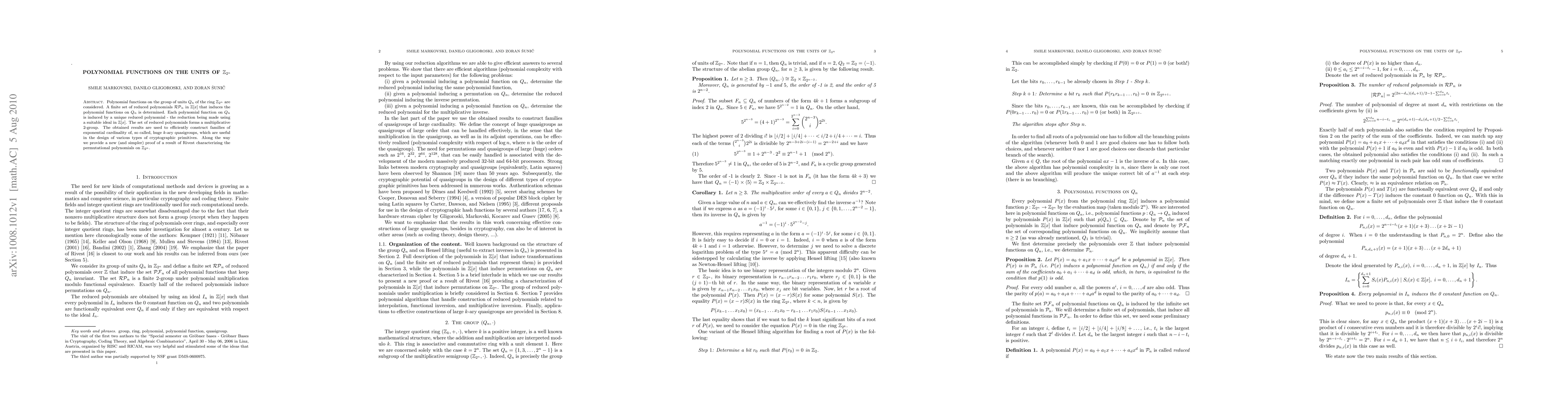 Polynomial functions on the group of units Q_n of the ring Z_{2^n} are considered. A finite set of reduced polynomials RP_n in Z[x] that induces the polynomial functions on Q_n is determined. Each polynomial function on Q_n is induced by a unique reduced polynomial - the reduction being made using a suitable ideal in Z[x]. The set of reduced polynomials forms a multiplicative 2-group. The obtained results are used to efficiently construct families of exponential cardinality of, so called, huge k-ary quasigroups, which are useful in the design of various types of cryptographic primitives. Along the way we provide a new (and simpler) proof of a result of Rivest characterizing the permutational polynomials on Z_{2^n}.