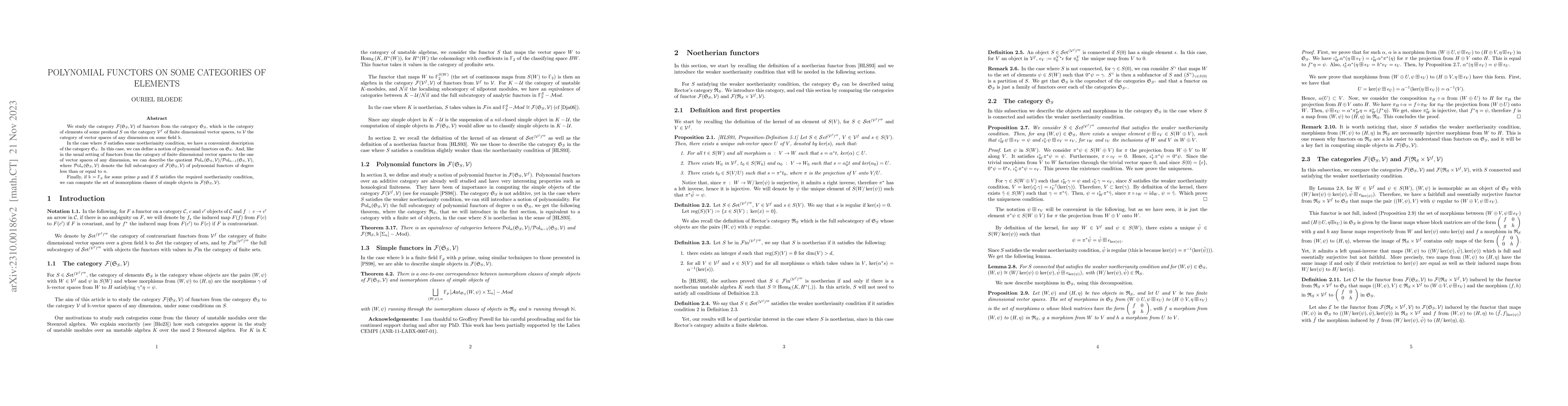 This paper explores the category of functors from the category of elements of a presheaf on finite-dimensional vector spaces to vector spaces over a field, focusing on polynomial functors under certain noetherian conditions. It describes the structure of these functors and computes the set of isomorphism classes of simple objects when the field is a finite field.