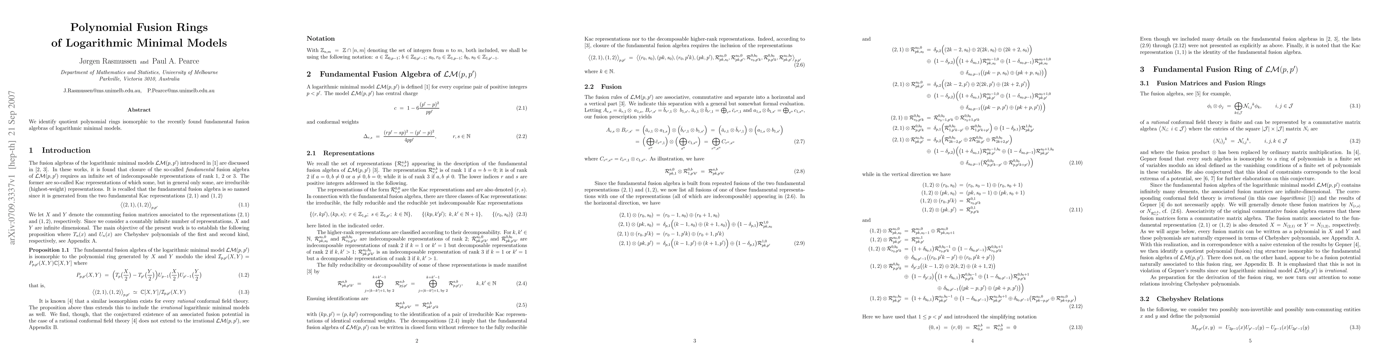 Summary: This paper identifies quotient polynomial rings that correspond to the fundamental fusion algebras of logarithmic minimal models, providing a new perspective on their structure.