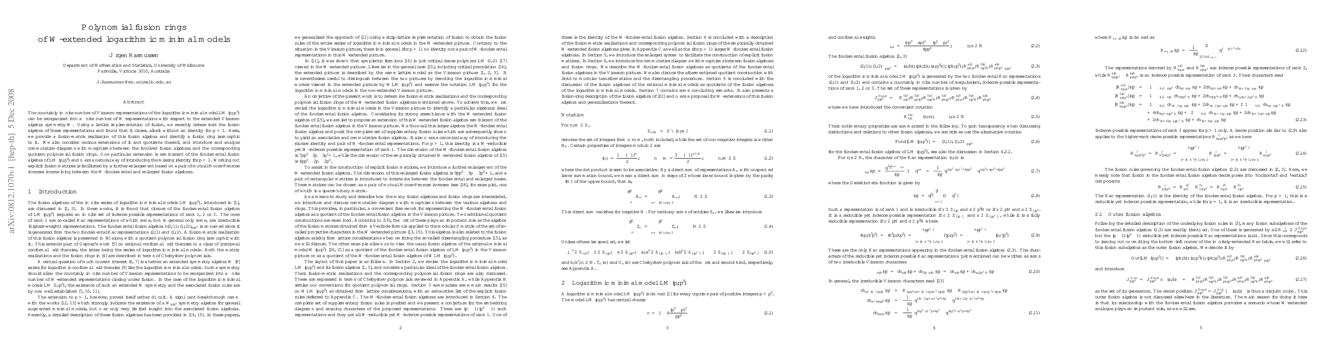 This paper reorganizes the Virasoro representations of logarithmic minimal models into W-representations, realizing their fusion algebra as a fusion ring. It introduces a polynomial fusion ring extension that provides a missing identity for p>1, and analyzes commutative diagrams and morphisms between these rings.