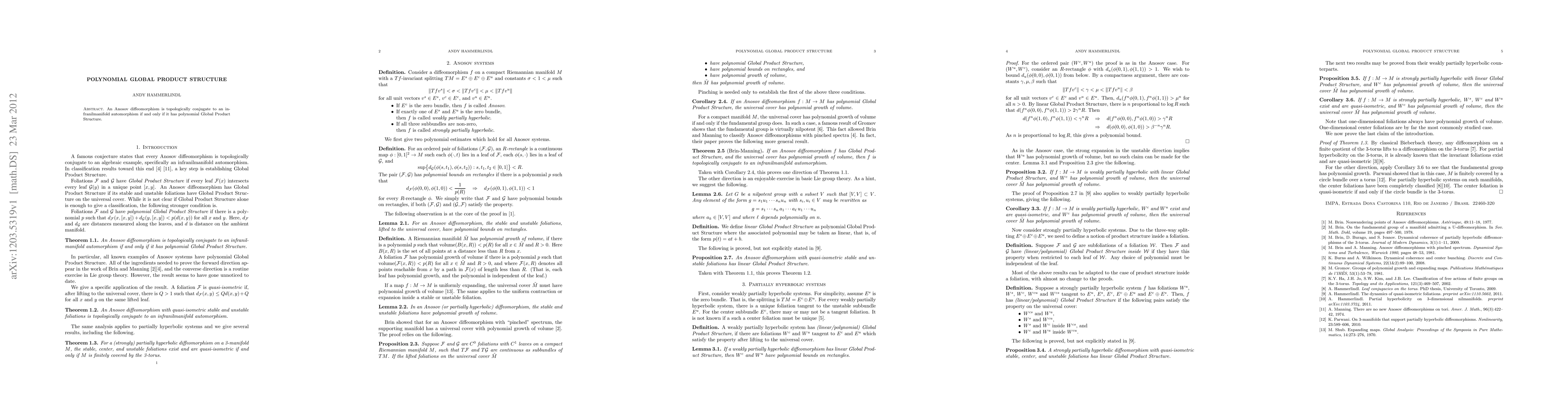 An Anosov diffeomorphism is topologically conjugate to an infranilmanifold automorphism if and only if it has polynomial Global Product Structure.