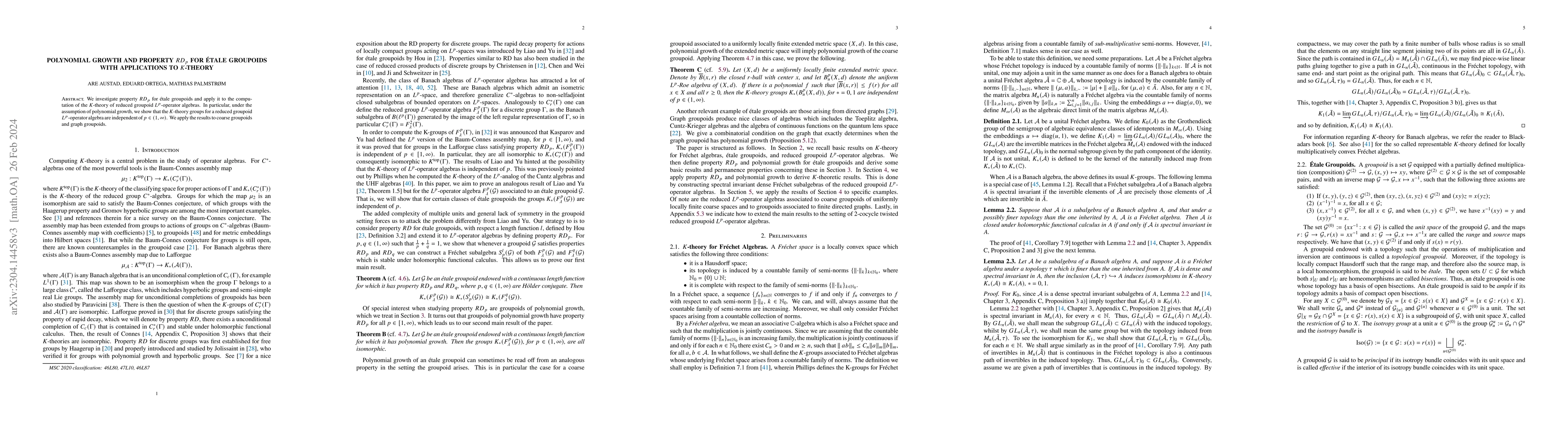 This paper studies property $RD_p$ in \'etale groupoids and demonstrates that under polynomial growth, the $K$-theory of reduced groupoid $L^p$-operator algebras is invariant for $p \in (1, \infty)$. Applications to coarse and graph groupoids are also discussed.