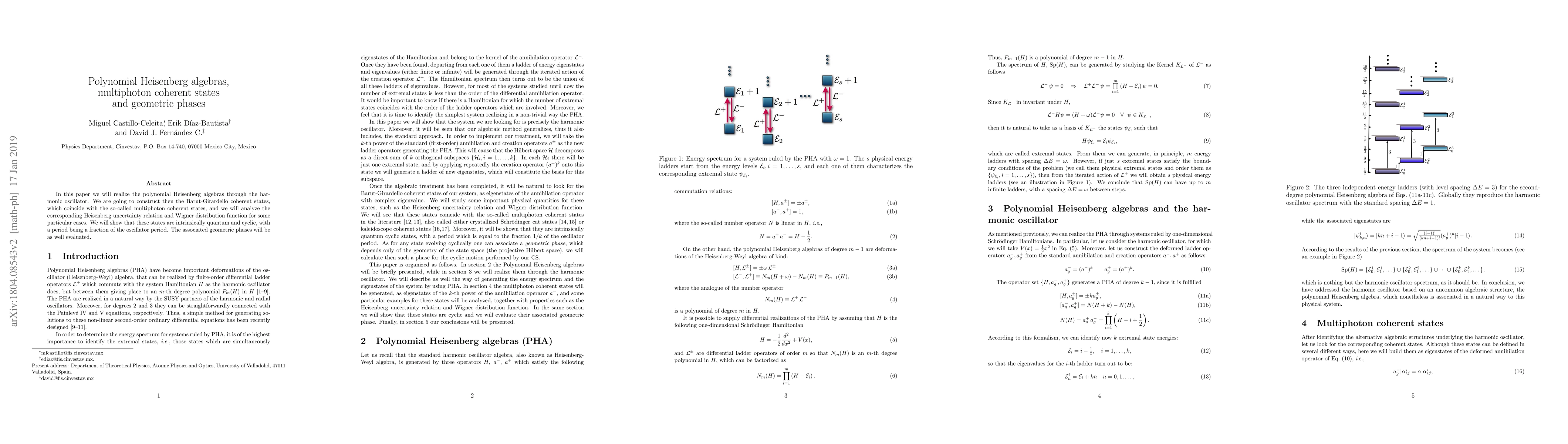 In this paper we will realize the polynomial Heisenberg algebras through the harmonic oscillator. We are going to construct then the Barut-Girardello coherent states, which coincide with the so-called multiphoton coherent states, and we will analyze the corresponding Heisenberg uncertainty relation and Wigner distribution function for some particular cases. We will show that these states are intrinsically quantum and cyclic, with a period being a fraction of the oscillator period. The associated geometric phases will be as well evaluated.