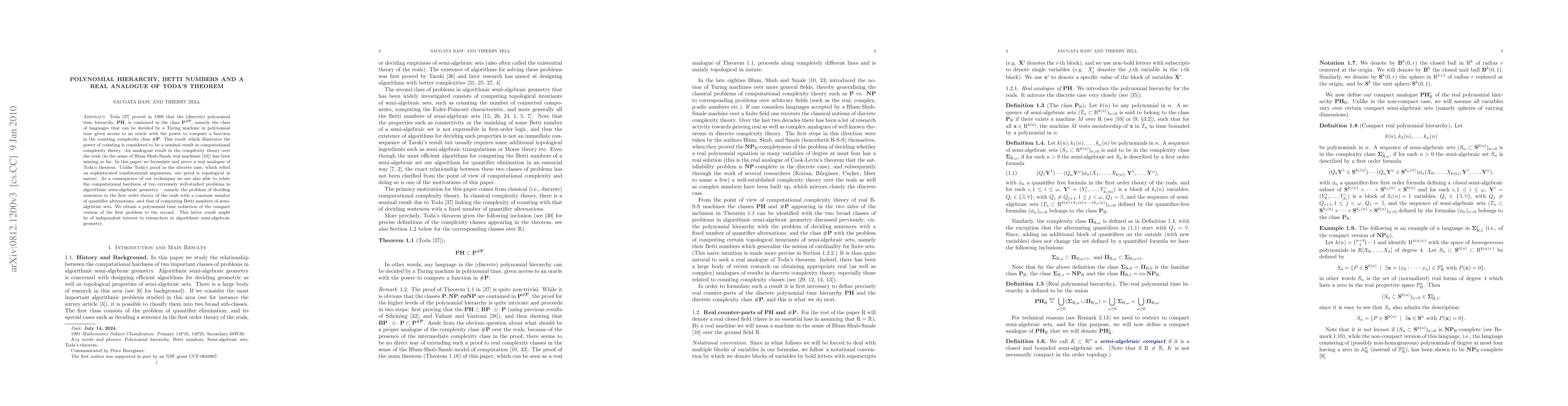 A real analogue of Toda's theorem has been proven, establishing a connection between polynomial hierarchy, Betti numbers, and computational complexity over the reals.