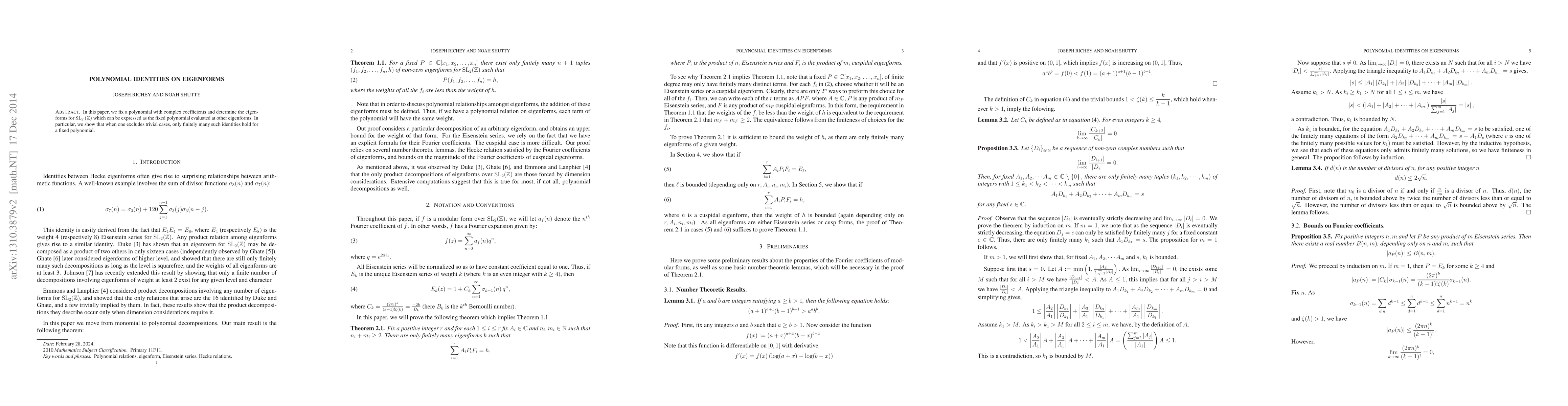This paper investigates polynomial identities involving eigenforms for SL2(Z), demonstrating that only a finite number of non-trivial identities exist for a given fixed polynomial evaluated at eigenforms. The study focuses on the eigenforms that can be represented as such evaluations.