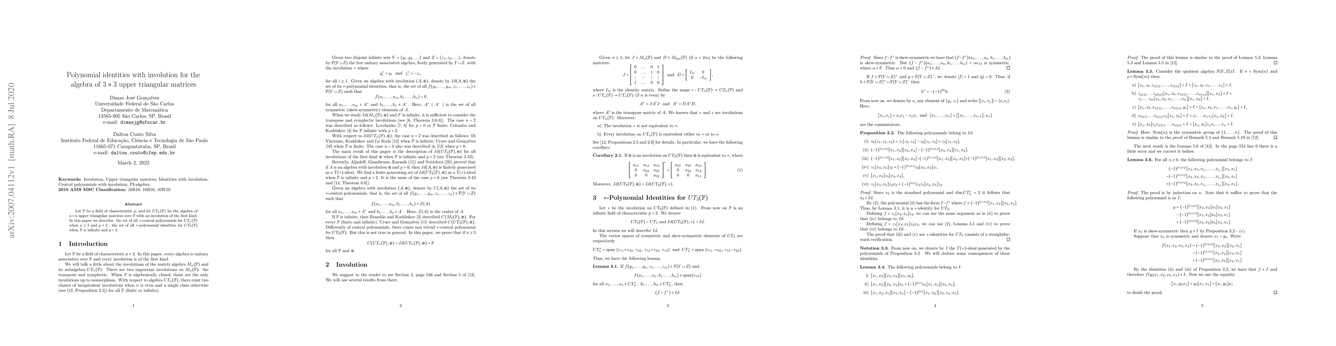 This paper investigates polynomial identities with involution for the algebra of 3 × 3 upper triangular matrices over a field of characteristic $p$ not equal to 2, detailing the set of $*$-central polynomials and $*$-polynomial identities when the field is infinite.