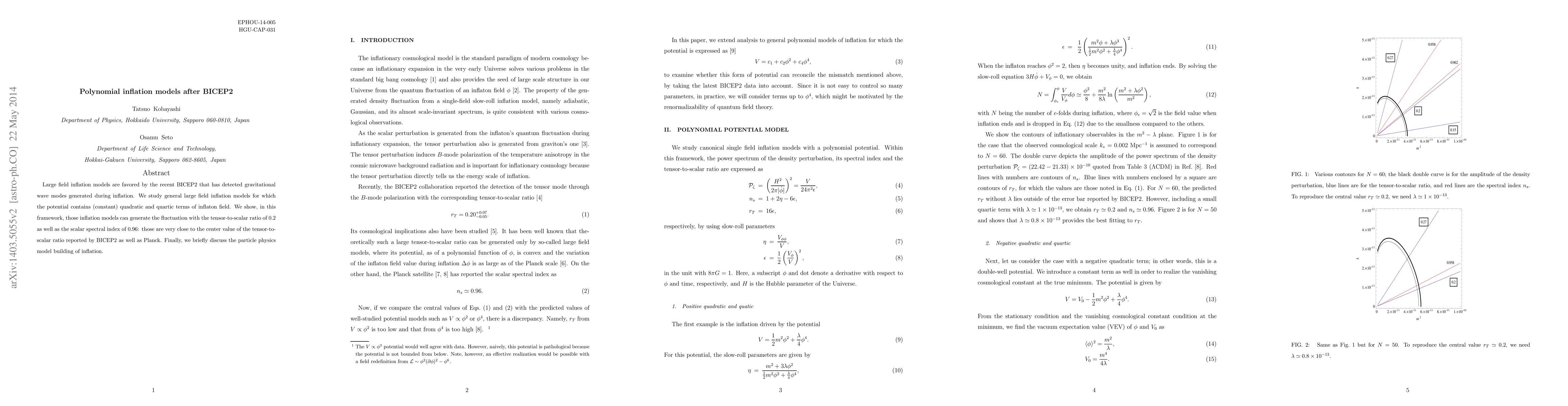 This paper examines large field inflation models with quadratic and quartic inflaton field potentials, demonstrating they can produce tensor-to-scalar ratios and scalar spectral indices consistent with BICEP2 and Planck observations. It also touches on the particle physics underpinnings for these inflationary models.
