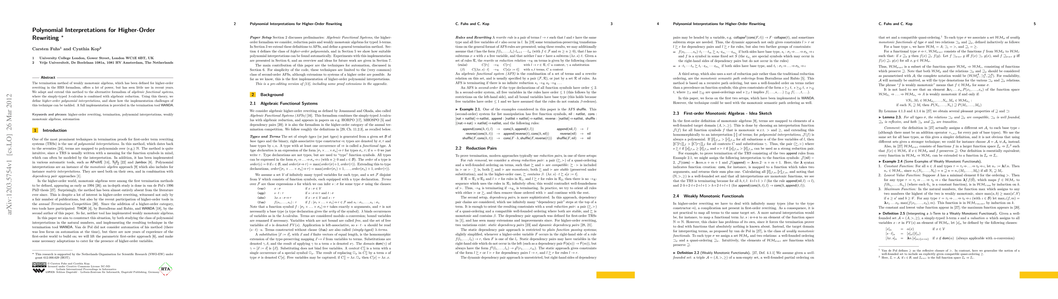 This paper adapts and extends a method for higher-order rewriting termination based on weakly monotonic algebras to algebraic functional systems, combining simply-typed lambda-calculus with algebraic reduction. It defines higher-order polynomial interpretations and provides a full implementation in the WANDA termination tool.