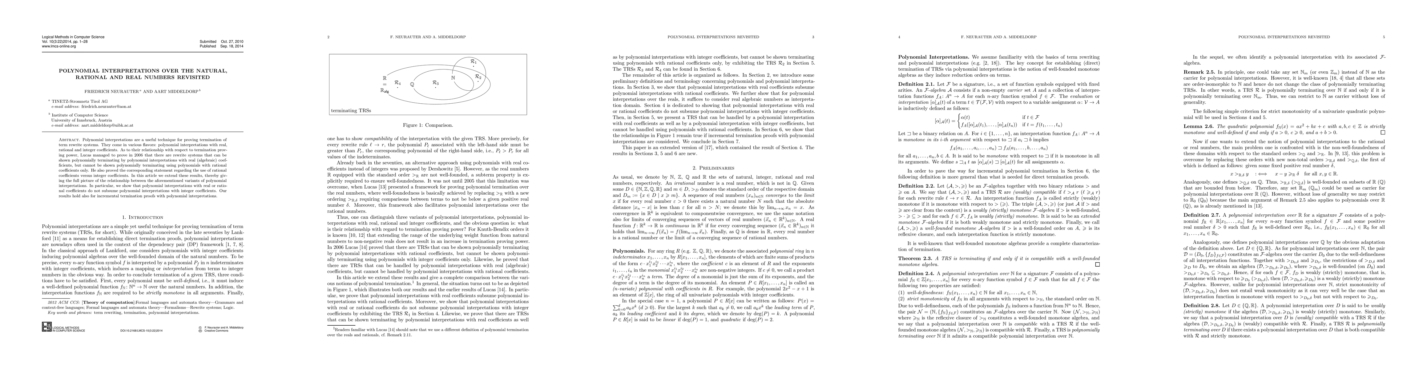 This paper explores the comparative effectiveness of different polynomial interpretations—real, rational, and integer coefficients—in proving the termination of term rewrite systems. It extends previous results by Lucas, confirming that interpretations with real or rational coefficients do not subsume those with integer coefficients, and applies these findings to incremental termination proofs.