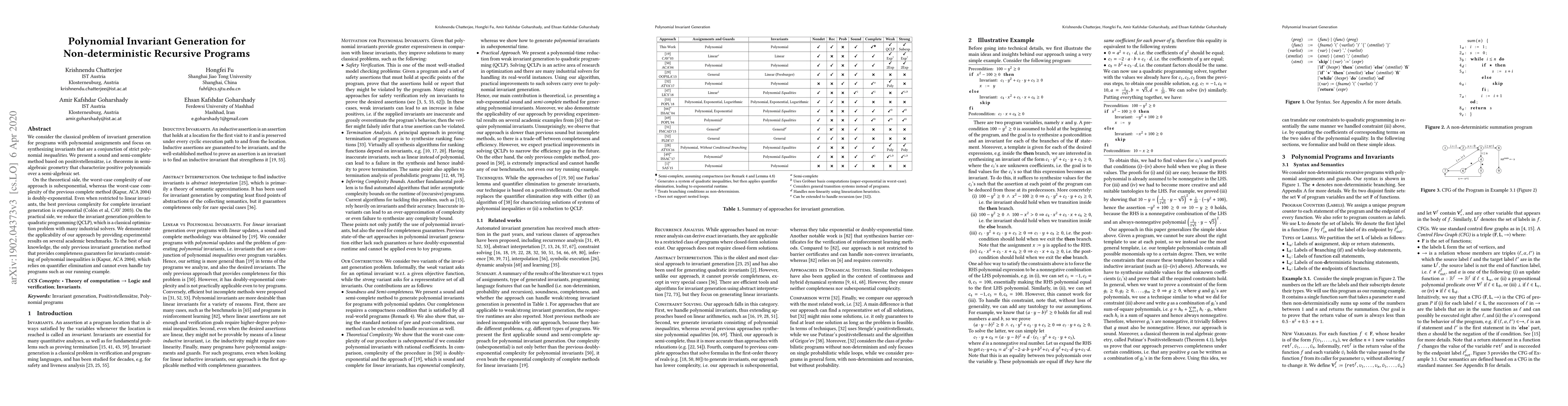 This paper presents a novel method for generating invariants in non-deterministic recursive programs using strict polynomial inequalities, based on positivstellensaetze from semi-algebraic geometry. The approach offers completeness guarantees and a subexponential worst-case complexity compared to previous methods, and it translates the problem into quadratic programming for practical implementation.