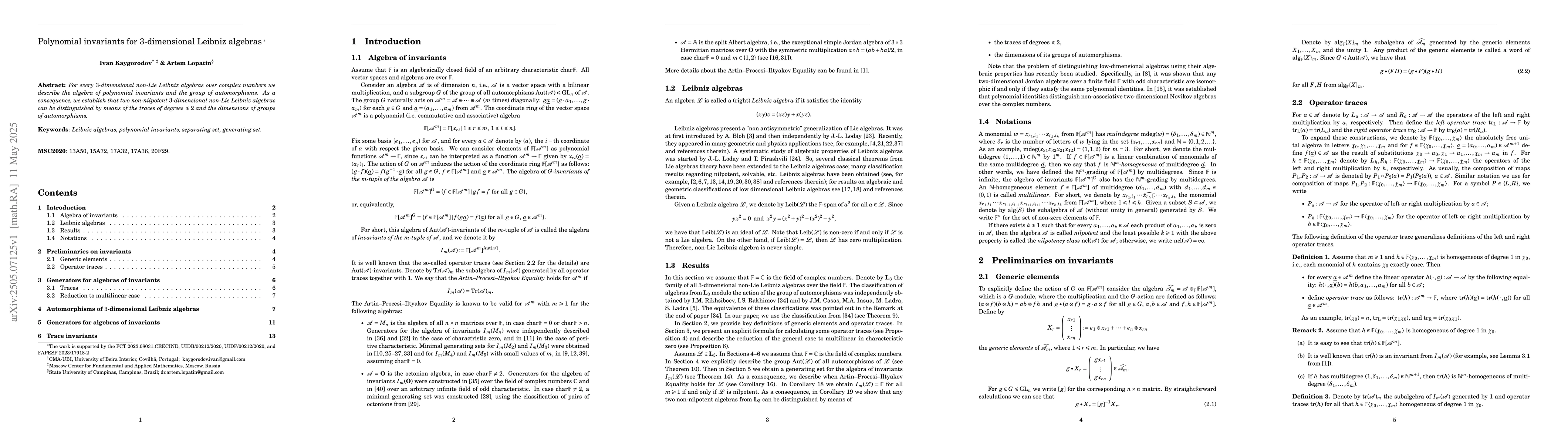 Researchers describe polynomial invariants for 3-dimensional non-Lie Leibniz algebras, enabling distinction between two similar algebras using specific traces and automorphism group dimensions.