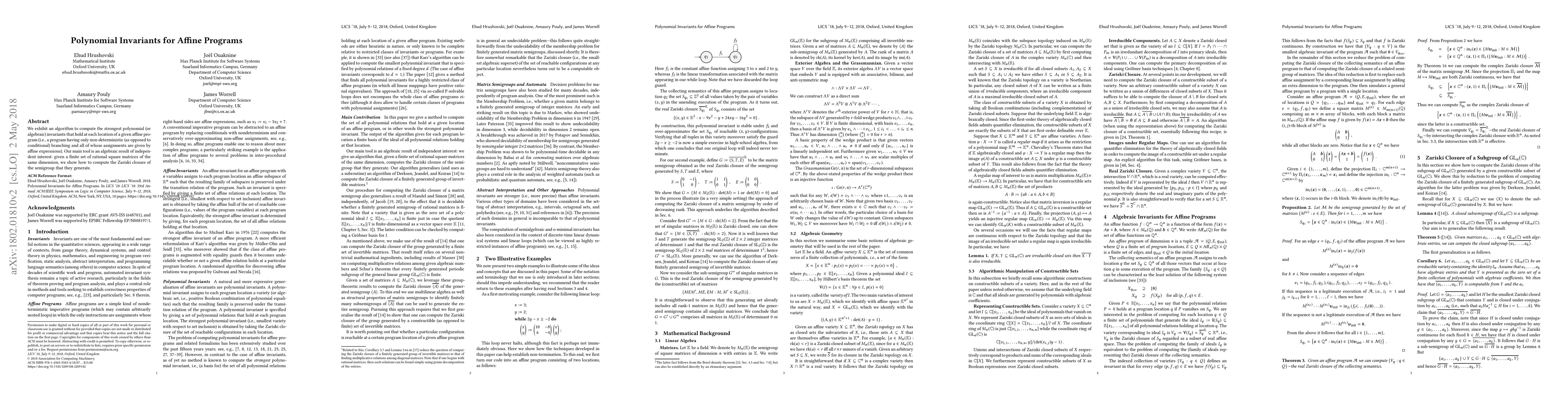 Summary: The paper presents an algorithm to determine the strongest polynomial invariants for affine programs, utilizing an algebraic method to compute the Zariski closure of the semigroup generated by a finite set of rational square matrices. This result is instrumental in analyzing the behavior of affine programs.