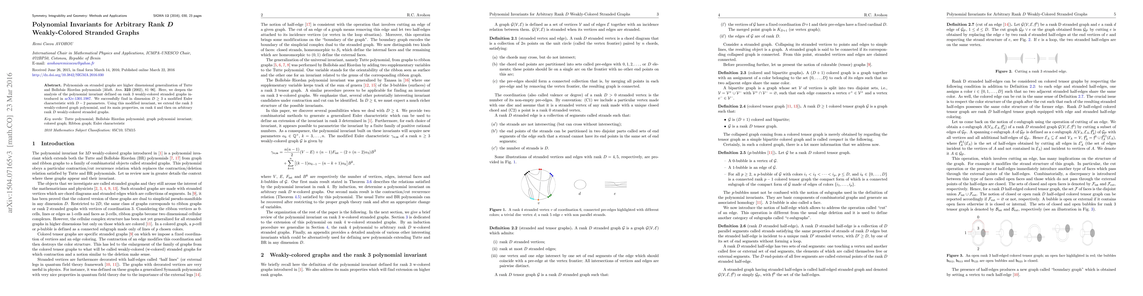 This paper extends the analysis of polynomial invariants on stranded graphs, introducing a modified Euler characteristic with $D-2$ parameters for arbitrary rank $D$ weakly-colored stranded graphs. It extends the rank 3 polynomial to rank 4 and generalizes it to any rank $D$.
