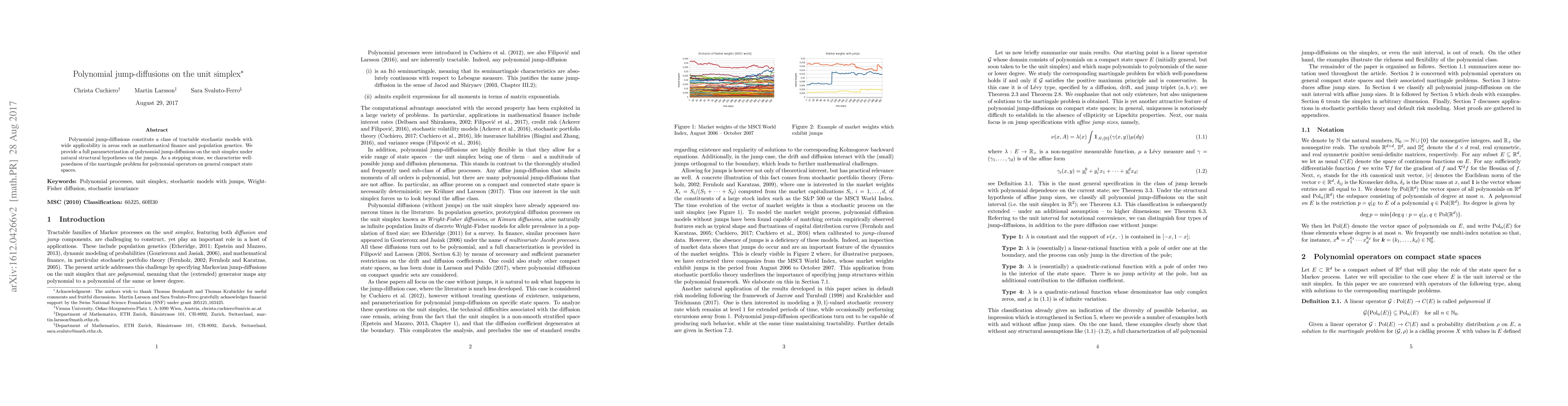 The paper presents a detailed parameterization and characterization of polynomial jump-diffusions on the unit simplex, advancing the theory of stochastic processes on compact state spaces.