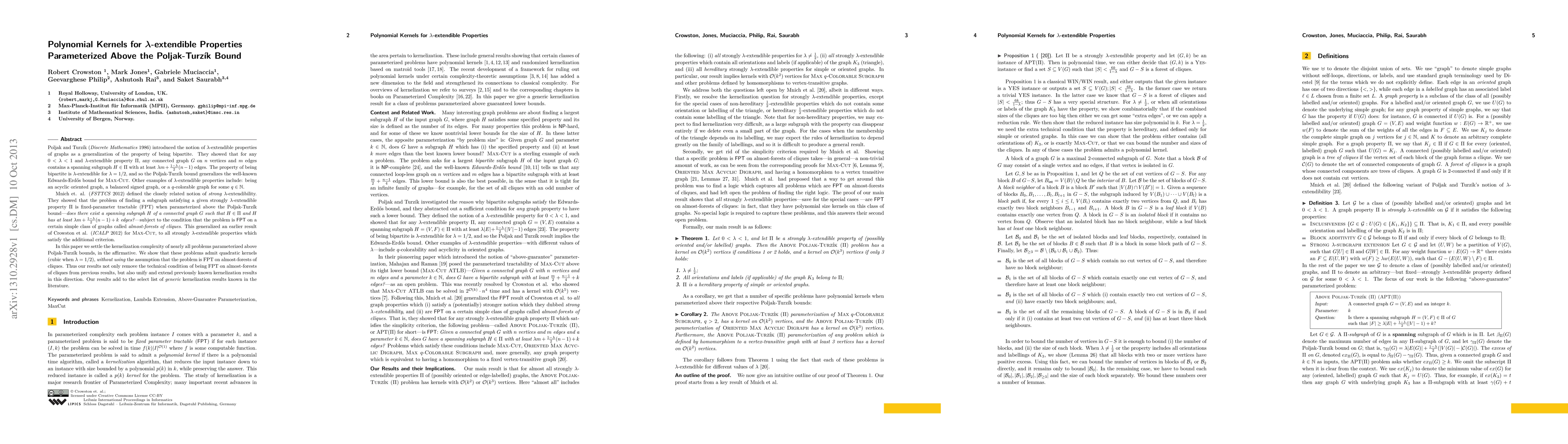 This paper demonstrates that problems parameterized above the Poljak-Turzik bound admit quadratic kernels (cubic when λ = 1/2), thereby removing the previous requirement of fixed-parameter tractability on almost-forests of cliques and unifying existing kernelization results.