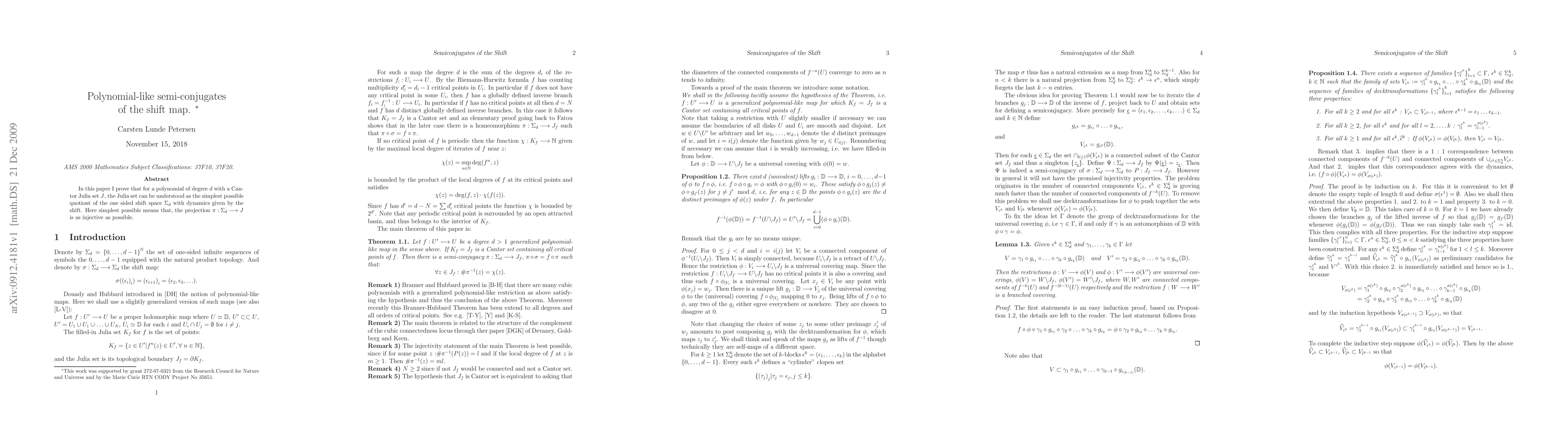 In this paper I prove that for a polynomial of degree $d$ with a Cantor Julia set $J$, the Julia set can be understood as the simplest possible quotiont of the one sided shift space $\Sigma_d$ with dynamics given by the shift. Here simplest possible means that, the projection $\pi: \Sigma_d \Rightarrow J$ is as injective as possible.