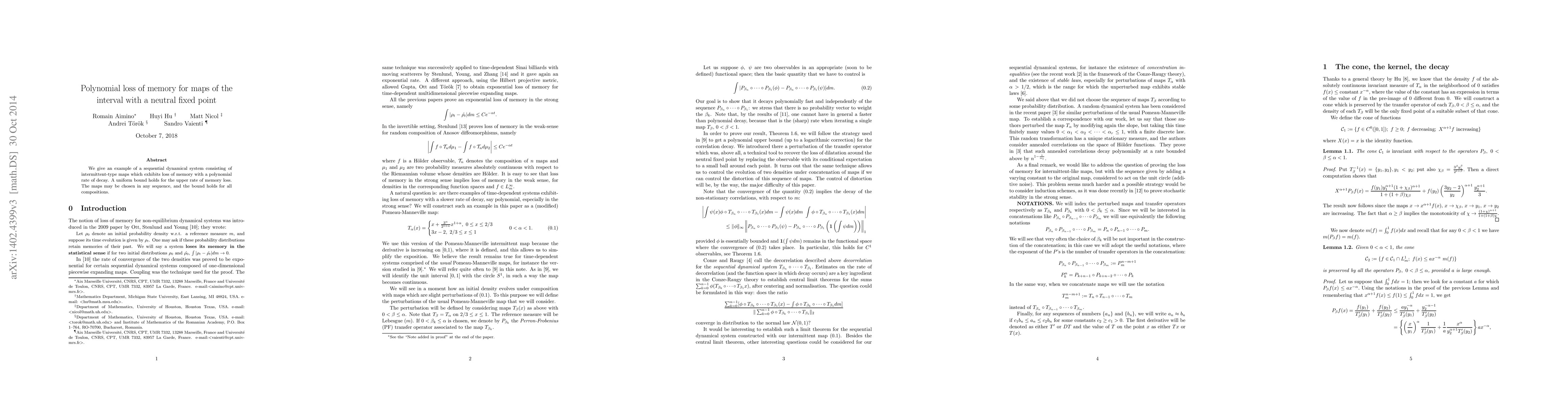Summary: This paper presents a sequential dynamical system with intermittent-type maps that demonstrates polynomial loss of memory, with a uniform upper bound for the rate of memory decay, applicable to any sequence of chosen maps and their compositions.
